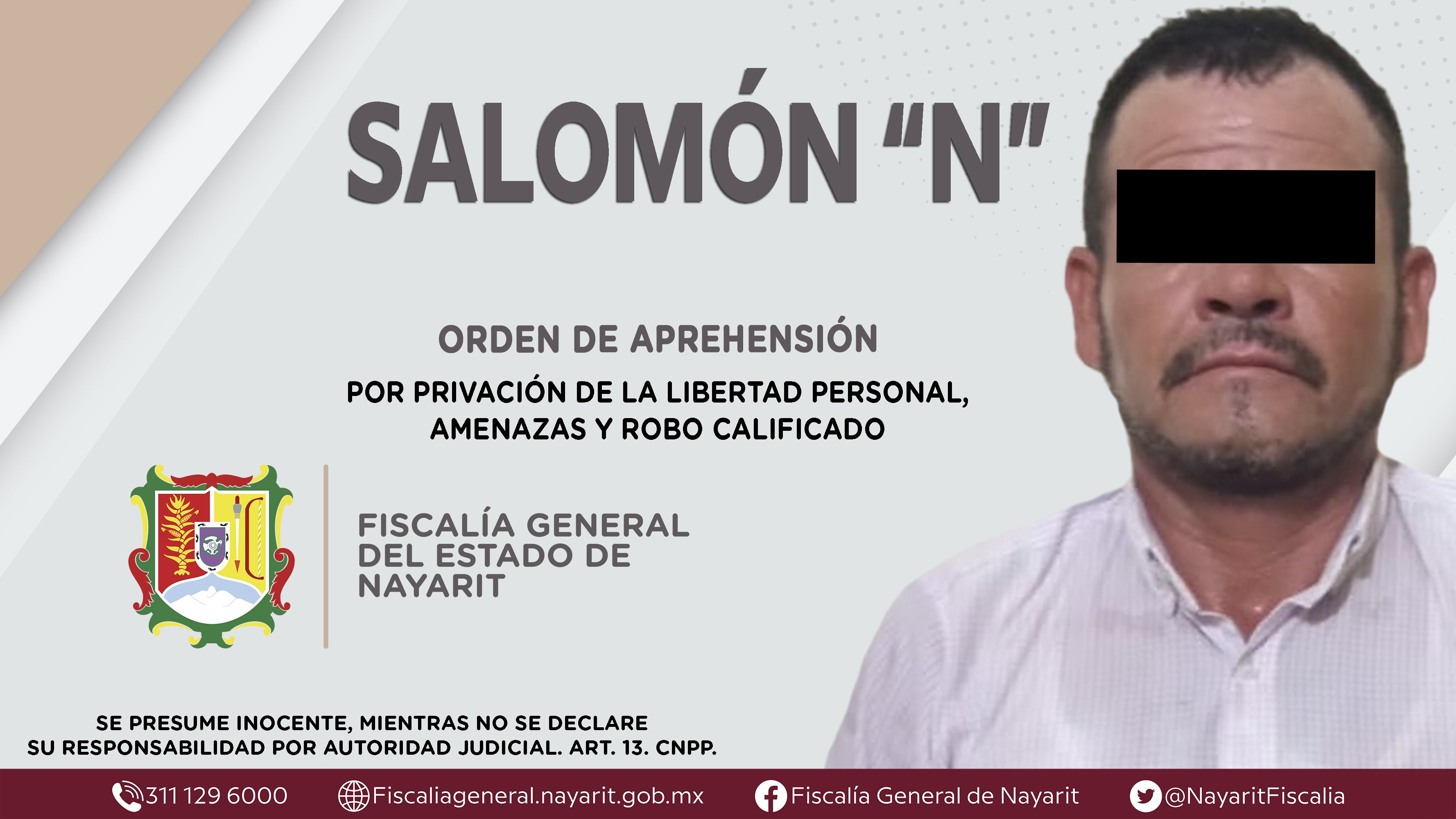 Elementos de la Agencia de Investigación Criminal de Nayarit ejecutaron una orden de aprehensión en la localidad Zacualpan, municipio de Compostela contra Salomón “N”, por su presunta participación en hechos que según apreciación de la ley encu...