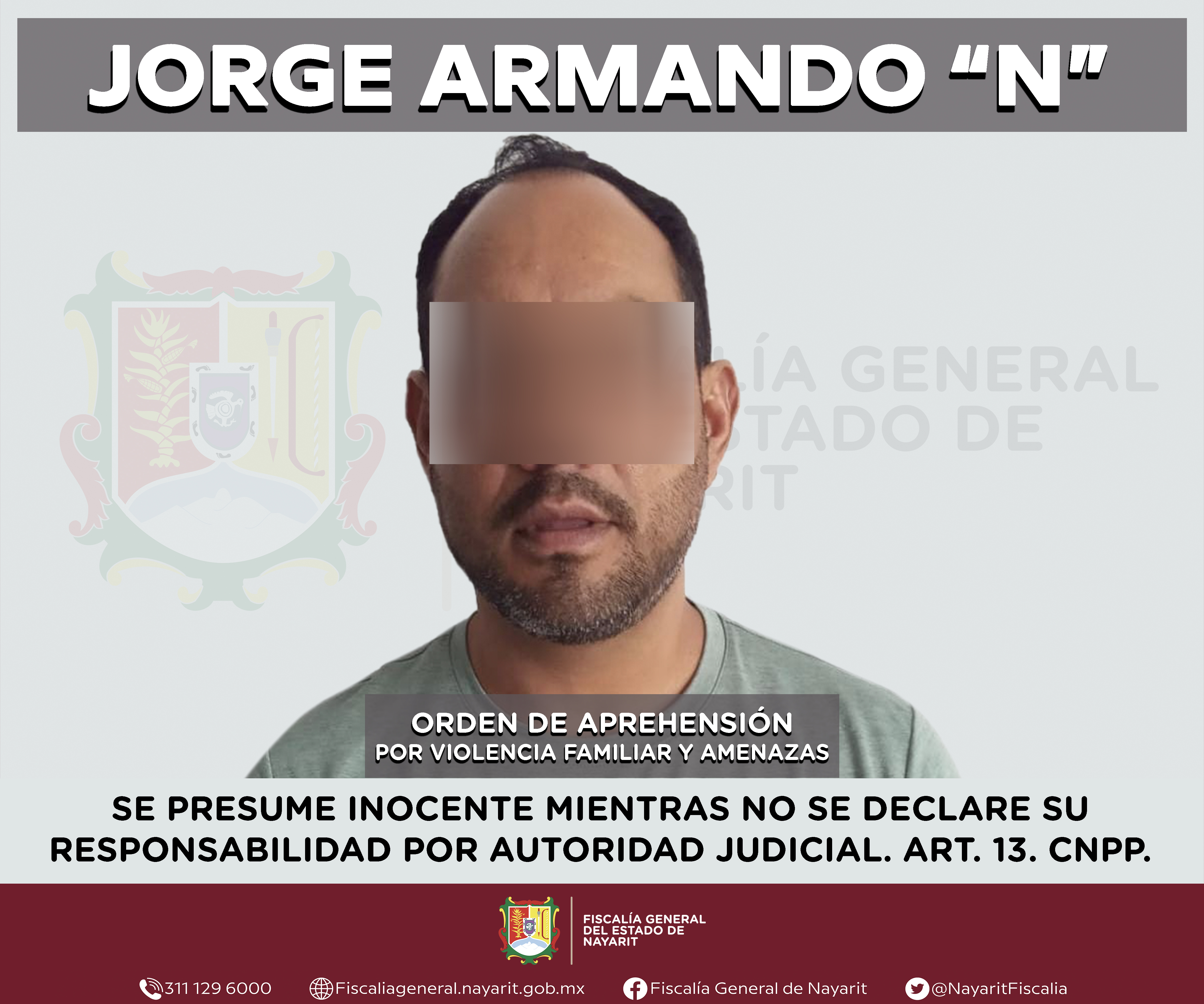 Elementos de la Agencia de Investigación Criminal cumplimentaron una orden de aprehensión en la capital nayarita contra Jorge Armando “N”, por su probable participación en hechos que la legislación vigente tipifica como delitos de violencia famil...