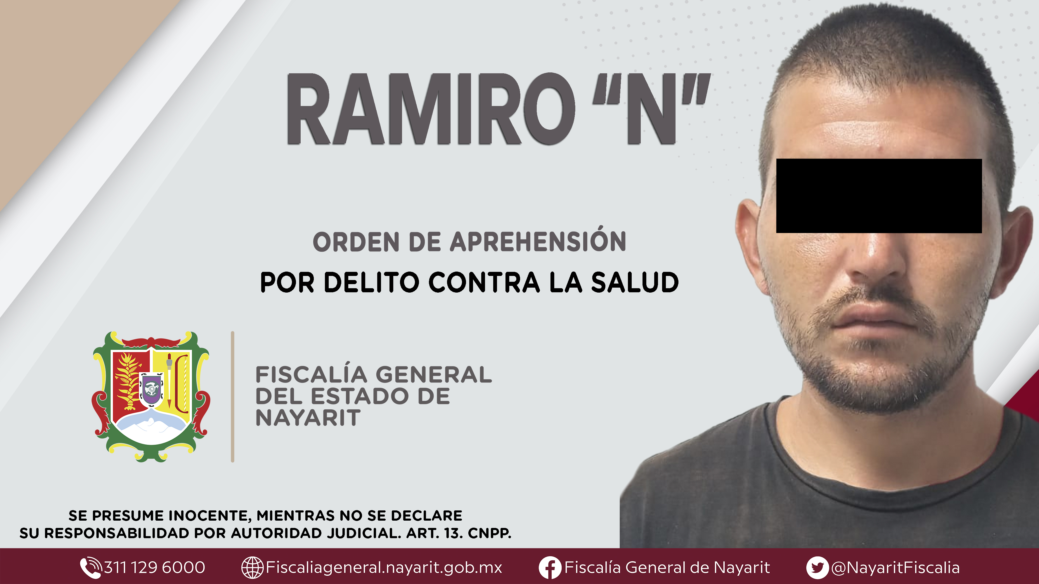 Elementos de la Agencia de Investigación Criminal de Nayarit ejecutaron una orden de aprehensión contra Ramiro “N”, por su presunta participación en hechos que según apreciación de la ley encuadran el delito contra la salud en su modalidad de na...