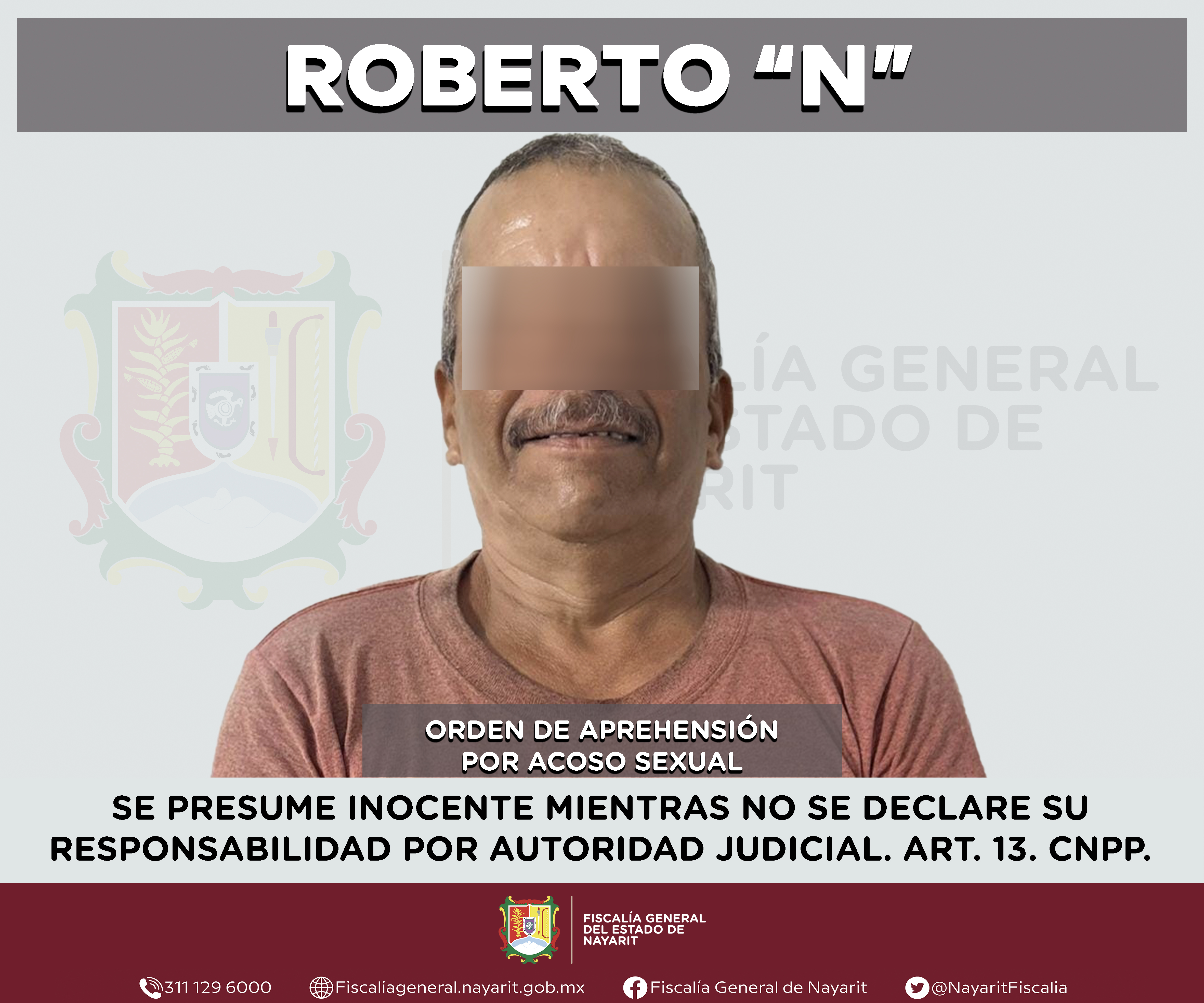 La Fiscalía General del estado de Nayarit informa que elementos de la Agencia de Investigación Criminal ejecutaron una orden de aprehensión en la ciudad de Tepic contra Roberto “N”, por su probable participación en hechos que la ley tipifica como...