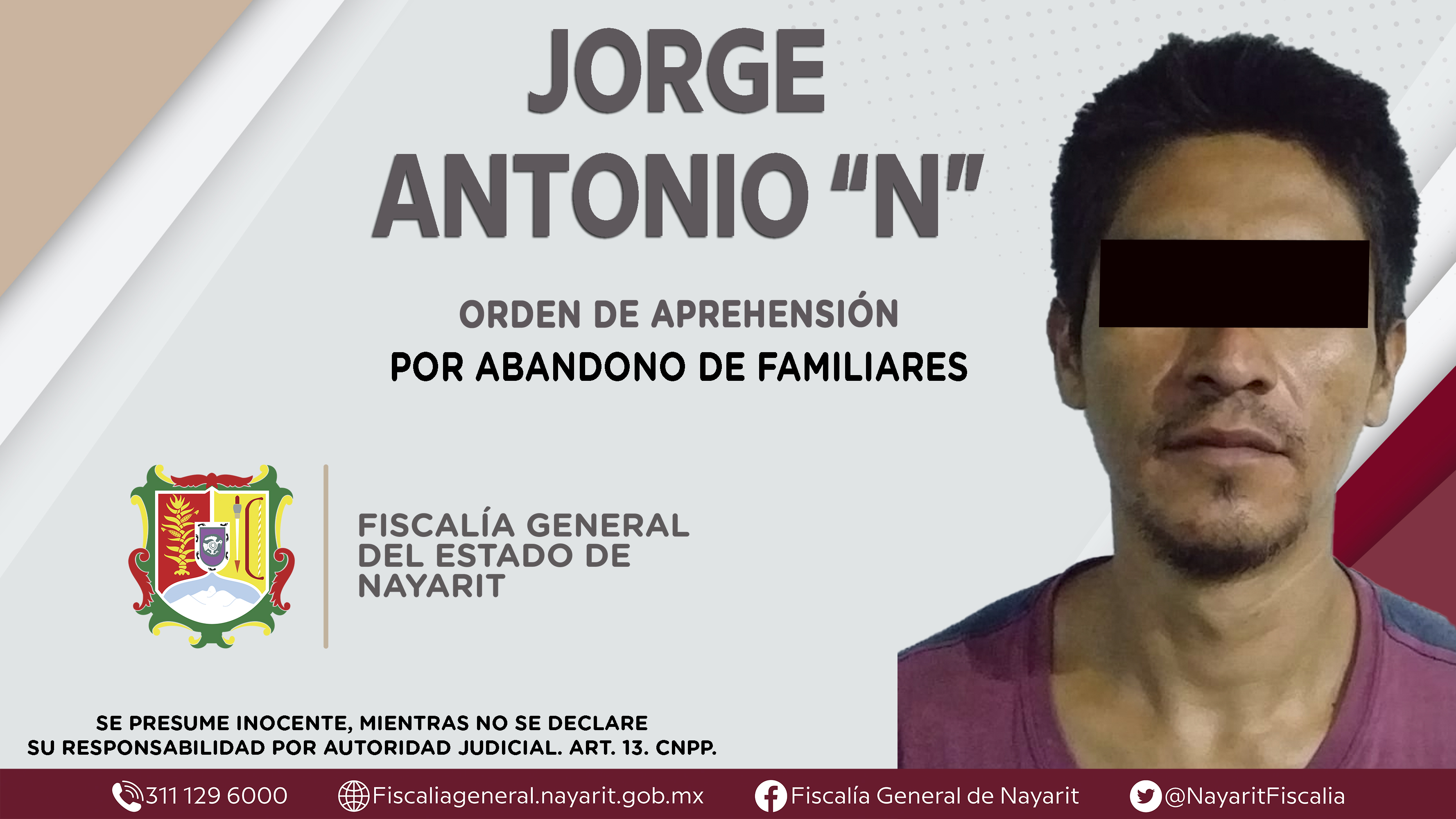 La Fiscalía General del estado a través de la Agencia de Investigación Criminal aprehendió en la ciudad de Tepic a Jorge Antonio “N”, por su probable participación en hechos que según apreciación de la ley configuran el delito de abandono de f...