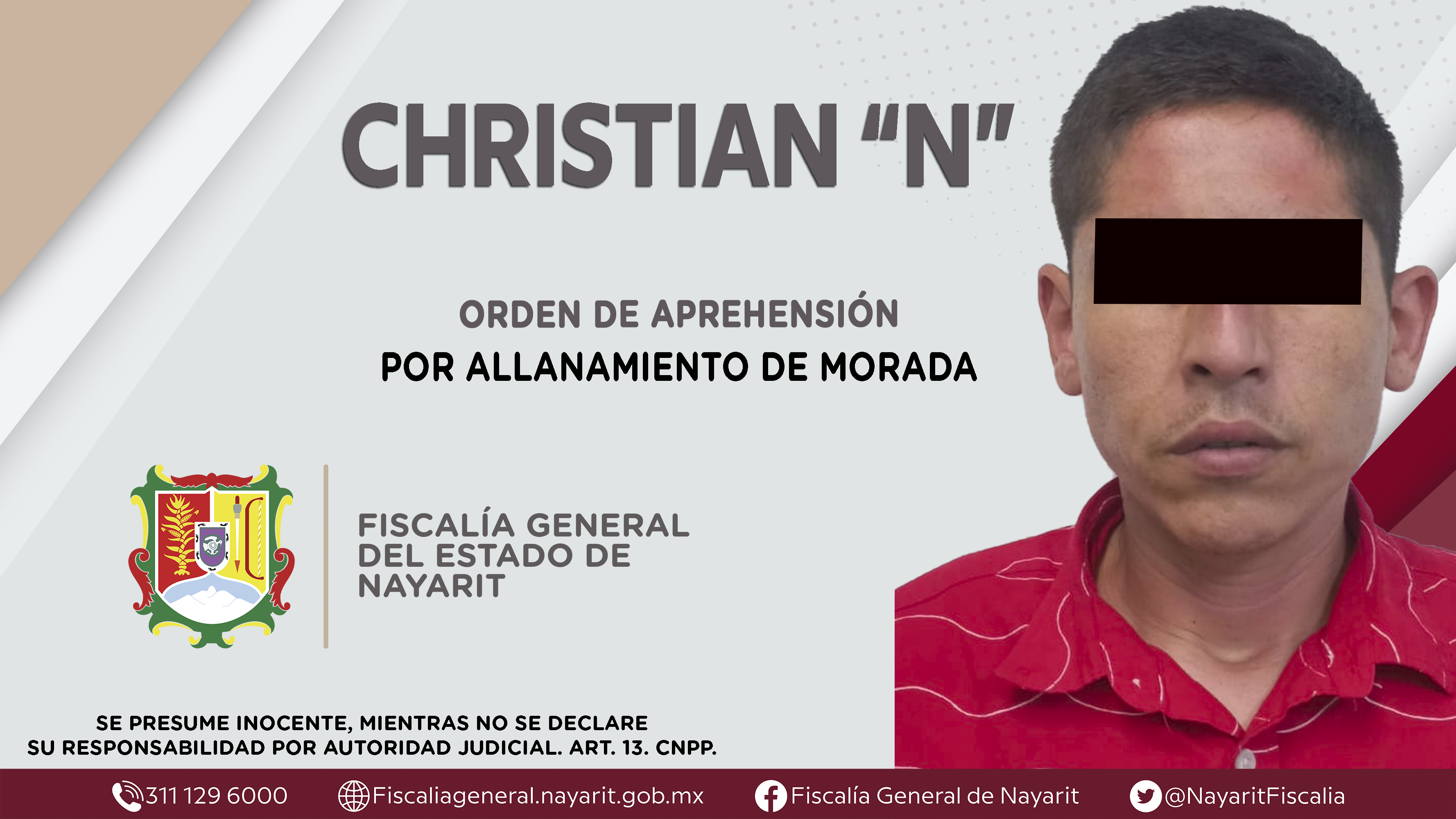 En colaboración con la Fiscalía General del estado de Baja California, elementos de la Agencia de Investigación Criminal de Nayarit dieron cumplimiento en la ciudad de Tepic a una orden de aprehensión que se obsequió contra Christian “N”, por su...