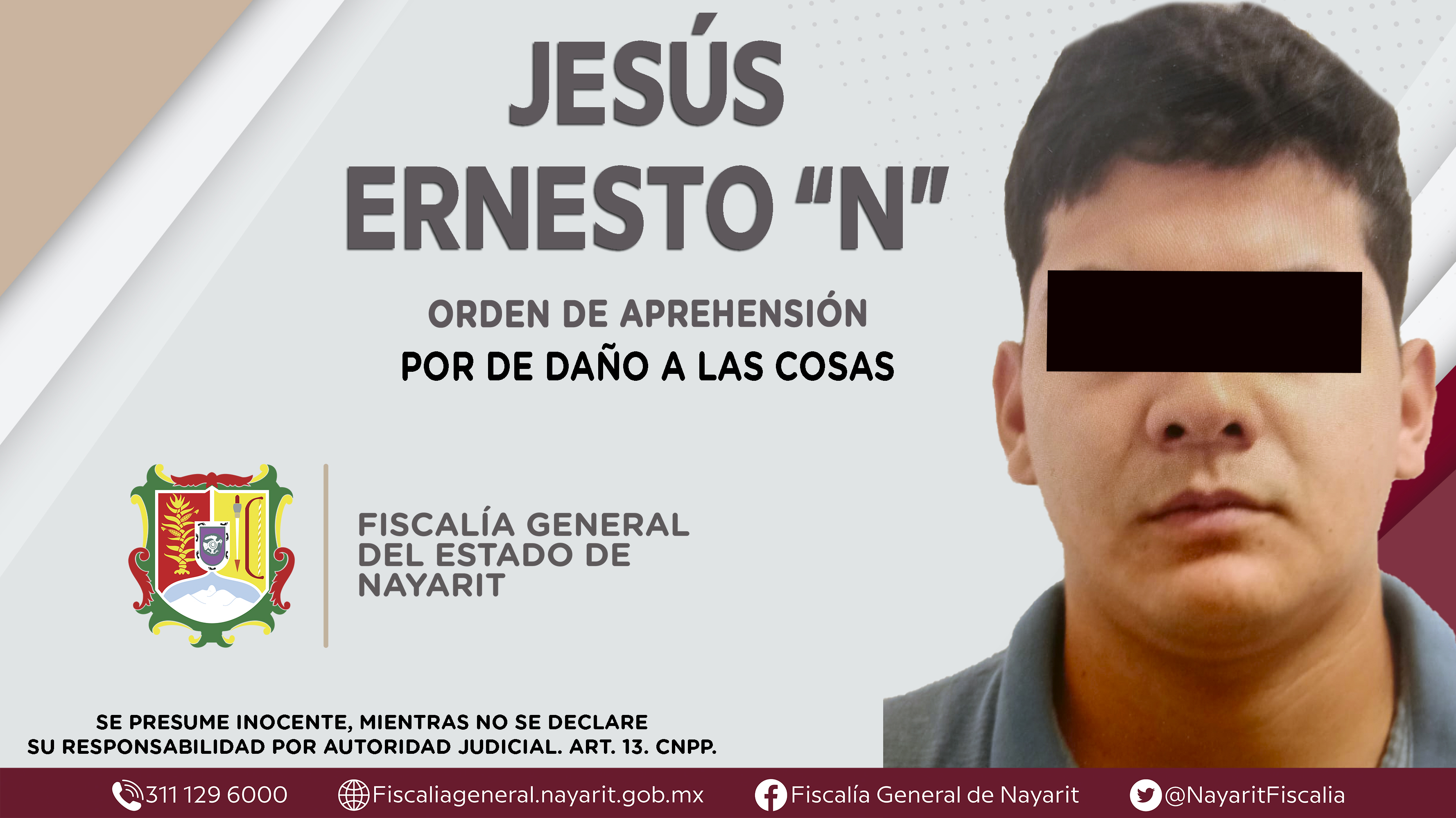 Elementos de la Agencia de Investigación Criminal cumplimentaron en la ciudad de Tepic una orden de aprehensión contra Jesús Ernesto “N”, por su presunta participación en hechos que según apreciación de la ley configuran el delito de daño a la...