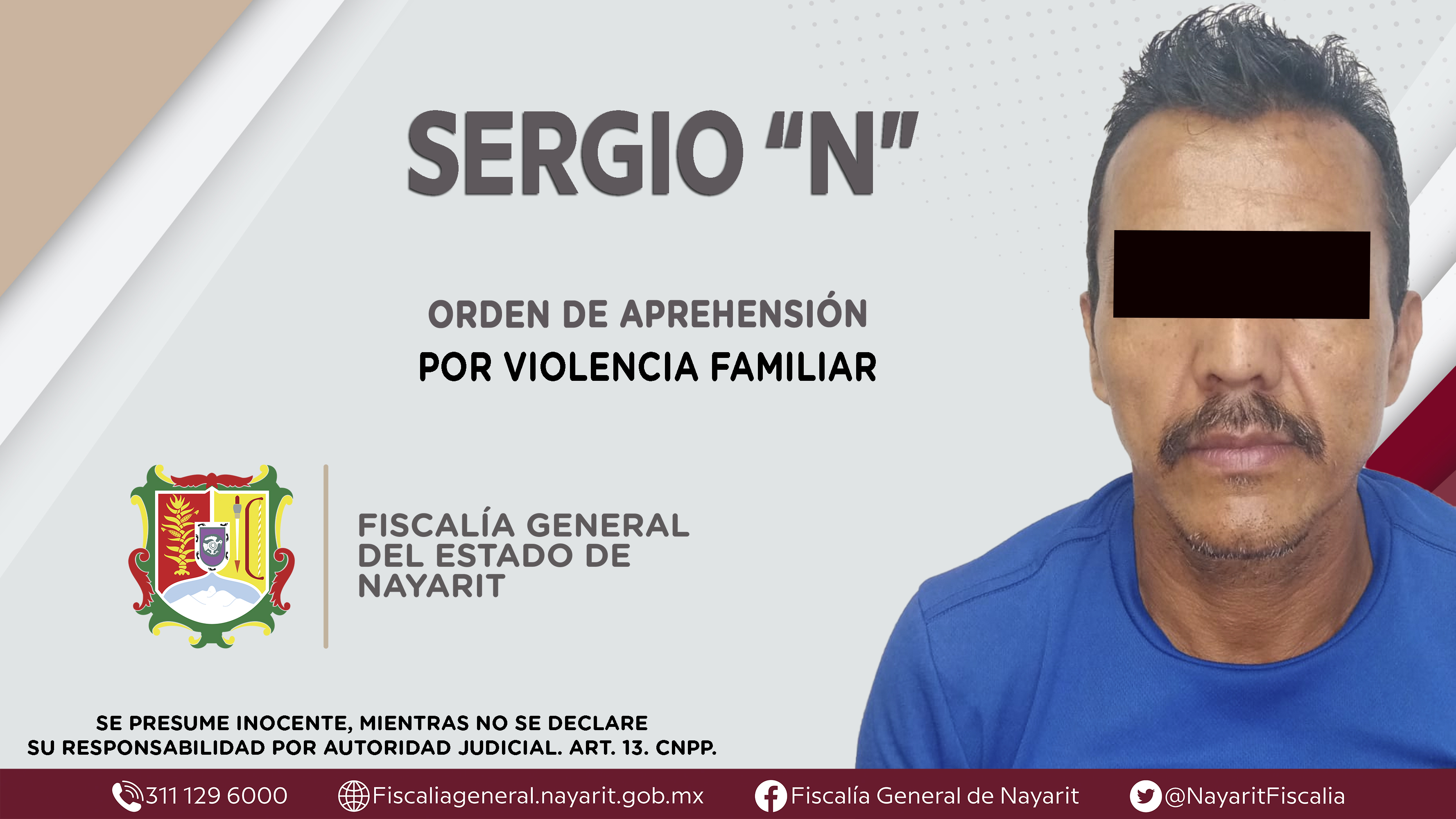 Elementos de la Agencia de Investigación Criminal cumplimentaron una orden de aprehensión en la ciudad de Tepic contra Sergio “N”, por su presunta participación en hechos que según apreciación de la ley configuran el delito de violencia familiar...