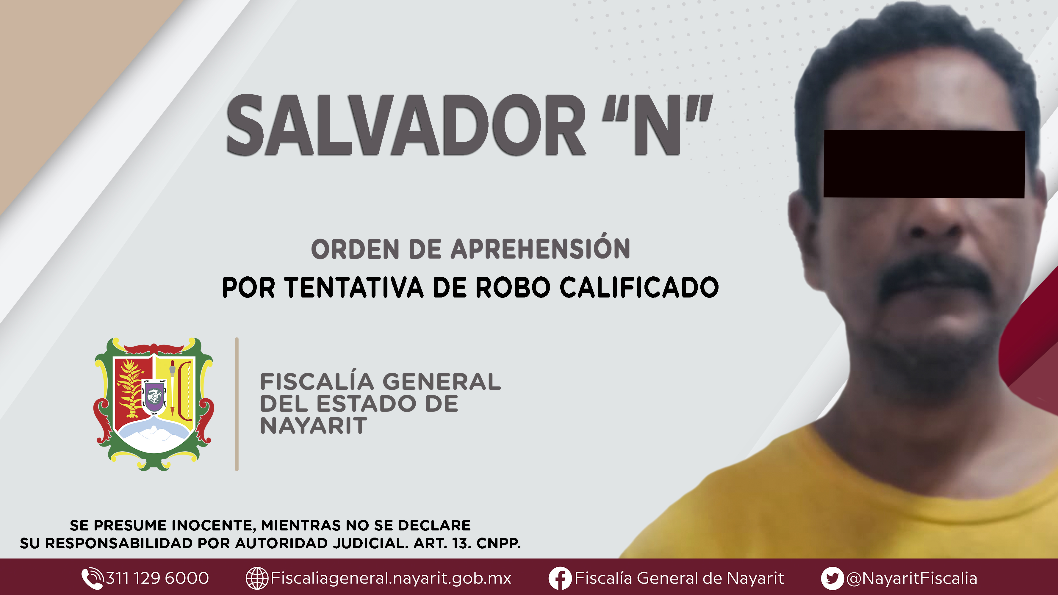 En la ciudad de Tepic, elementos de la Agencia de Investigación Criminal de Nayarit dieron cumplimiento a una orden de aprehensión que se obsequió contra Salvador “N”, por su probable participación en hechos que la ley califica como delito de rob...