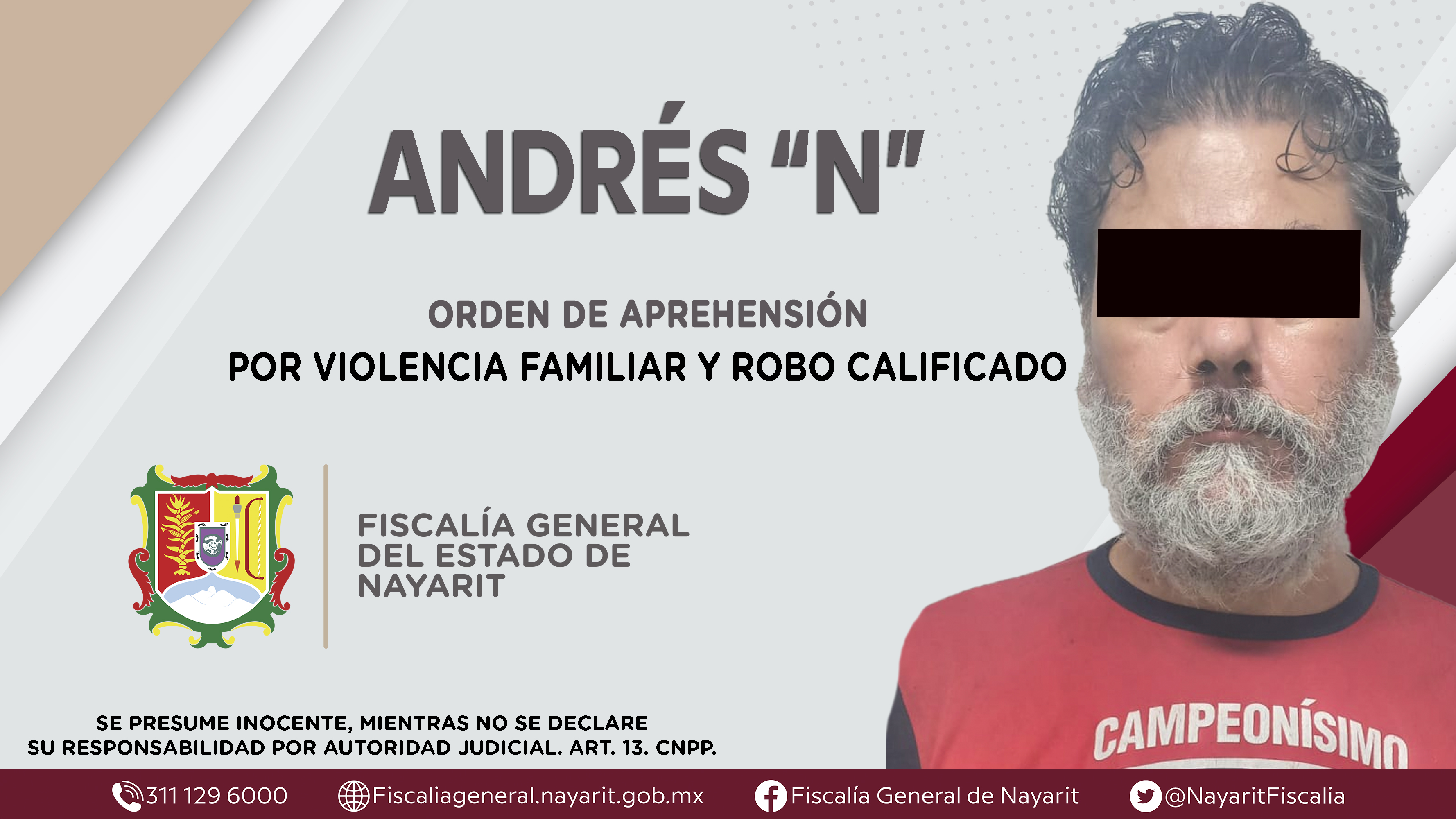 La Fiscalía General de Nayarit a través de la Agencia de Investigación Criminal ejecutó una orden de aprehensión contra Andrés “N”, por su presunta participación en hechos que según apreciación de la ley encuadran los delitos de violencia fa...
