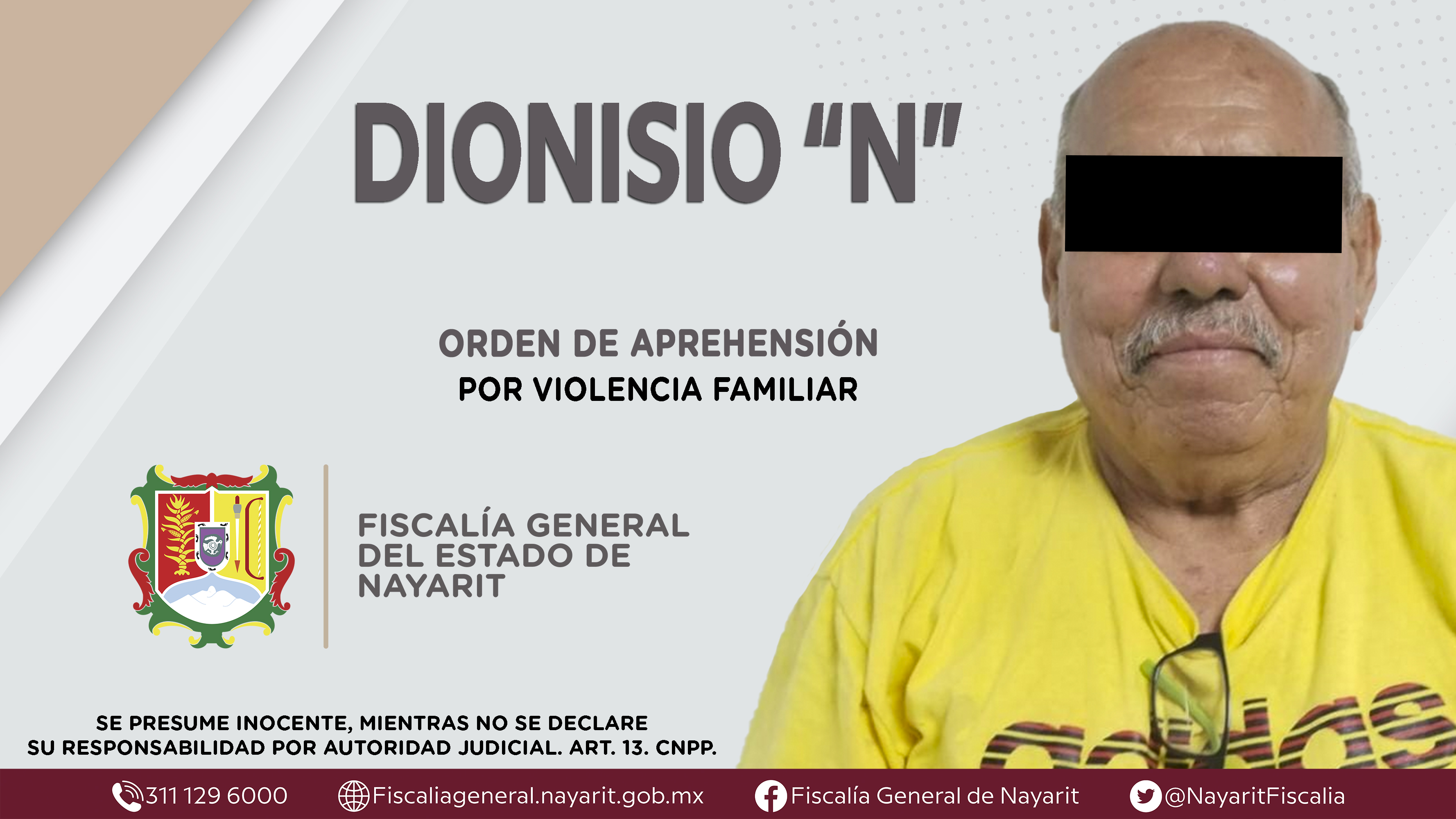 La Fiscalía General del Estado a través de la Agencia de Investigación Criminal dio cumplimiento a una orden de aprehensión en la ciudad de Tepic contra Dionisio “N”, por su presunta participación en hechos que según apreciación de la ley encu...