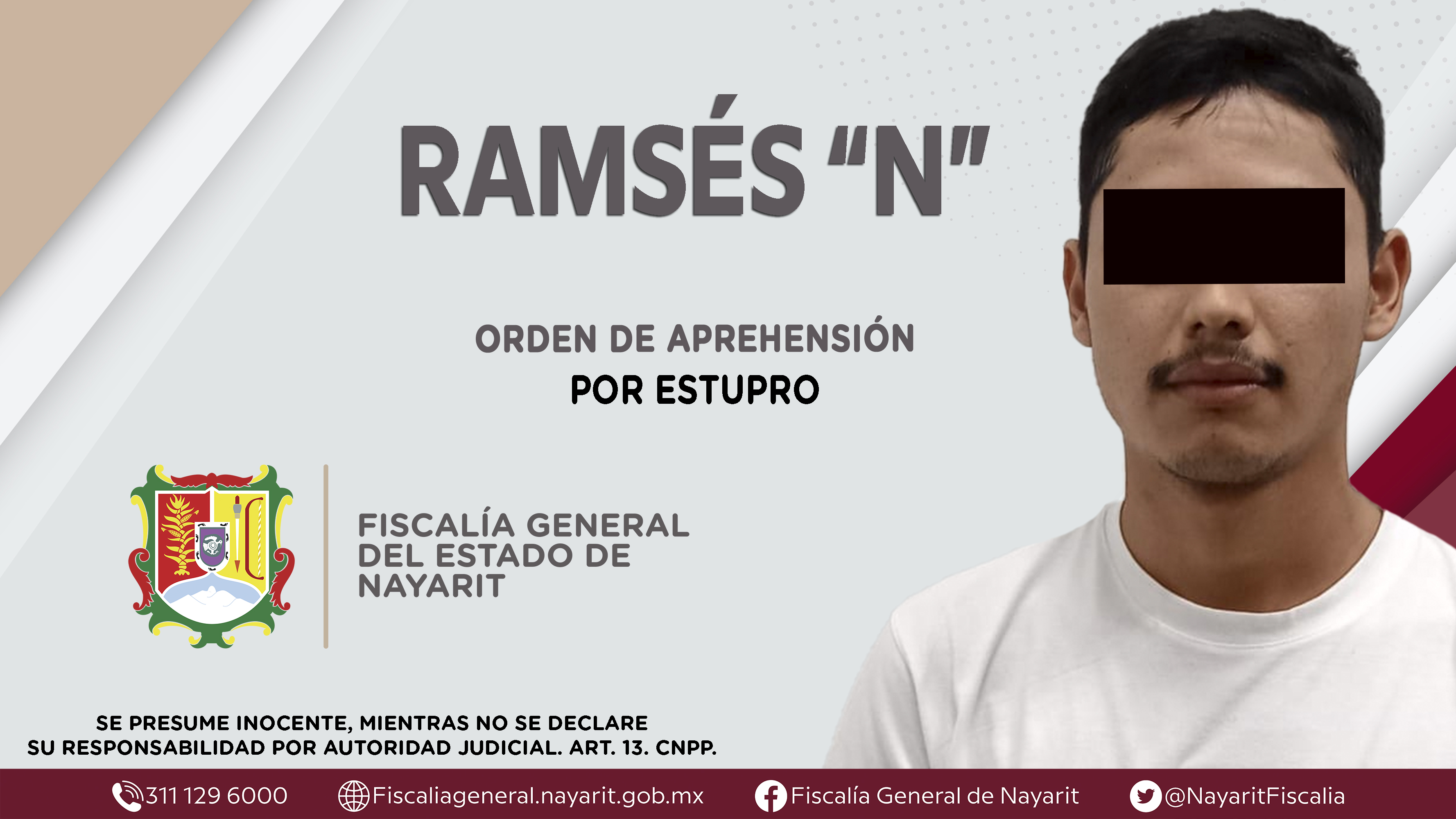 La Fiscalía General de Nayarit a través de la Agencia de Investigación Criminal ejecutó una orden de aprehensión en la localidad Francisco I. Madero -Puga-, municipio de Tepic contra Ramsés “N”, por su presunta participación en hechos que seg...