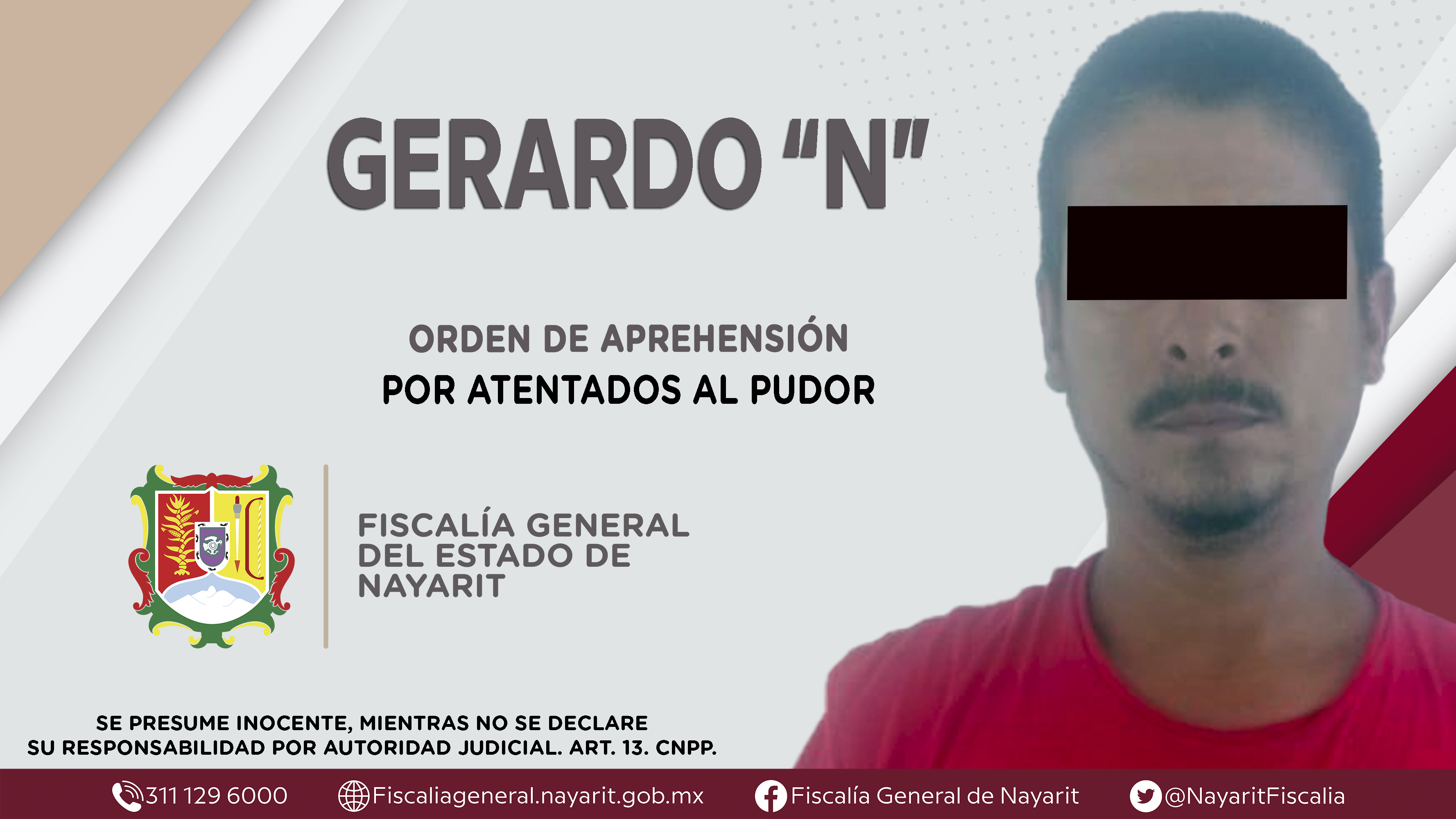 La Fiscalía General de Nayarit a través de la Agencia de Investigacion Criminal ejecutó una orden de aprehensión en el municipio de Tecuala contra Gerardo “N”, quien es originario y vecino del poblado Pajaritos de ese municipio, por su presunta p...