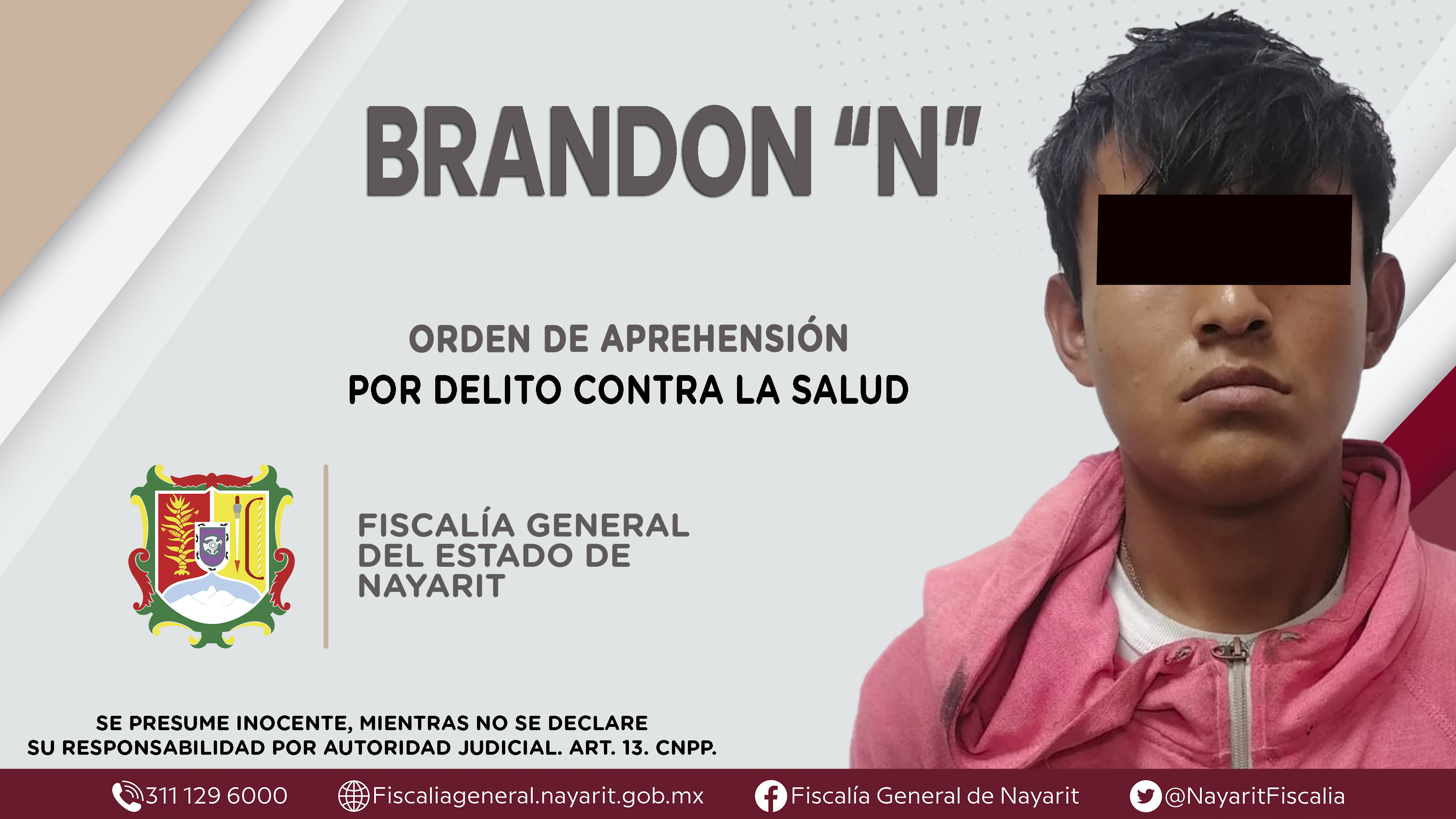 Elementos del Centro de Operaciones Estratégicas (COE) ejecutaron una orden de aprehensión en la ciudad de Tepic contra Brandon “N”, quien es originario del poblado Jesús María, municipio Del Nayar y vecino de la capital nayarita, por su presunta...