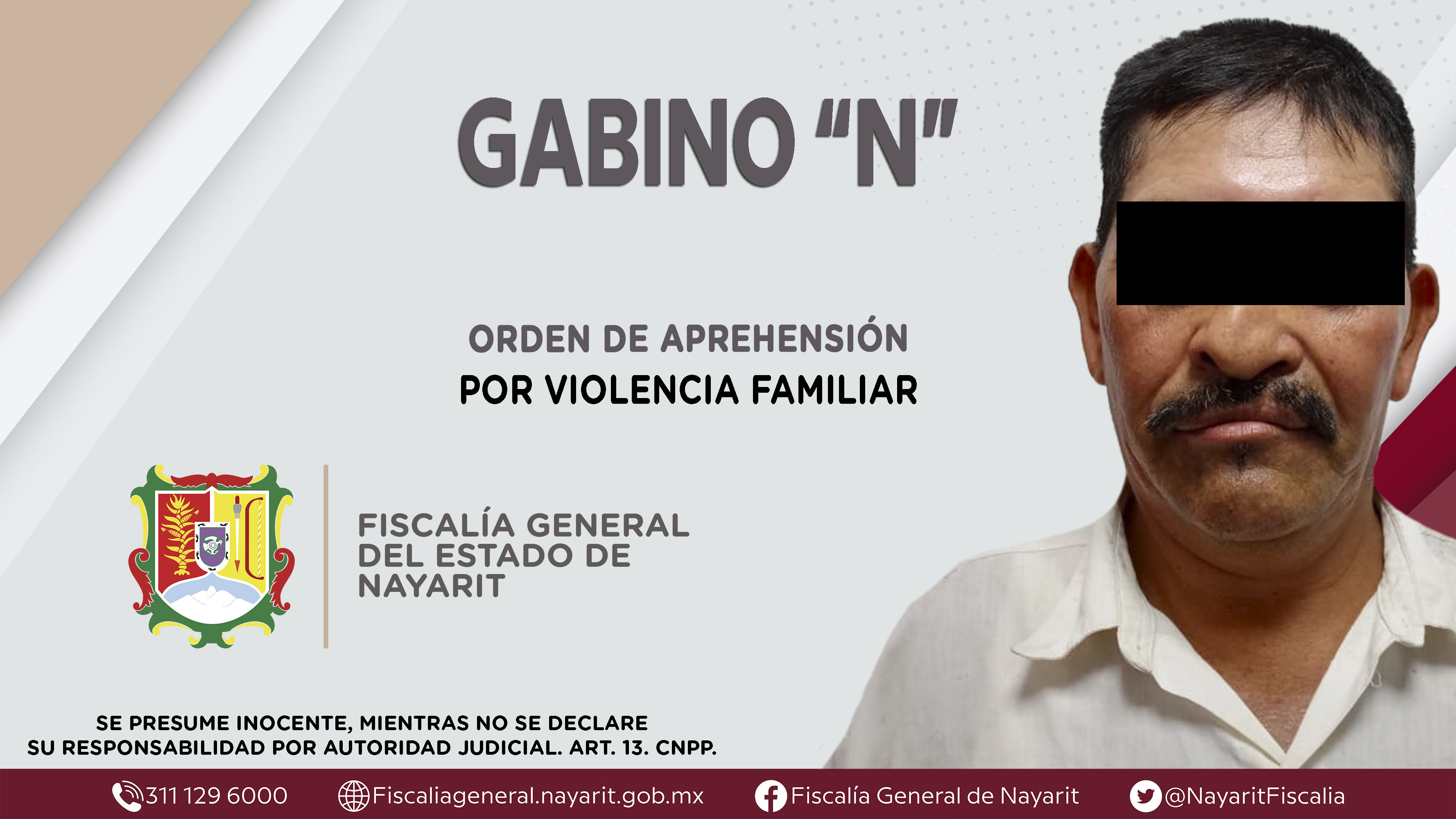 La Fiscalía General de Nayarit a través de la Agencia de Investigación Criminal ejecutó una orden de aprehensión contra Gabino “N”, por su presunta participación en hechos que según apreciación de la ley encuadran el delito de violencia famil...