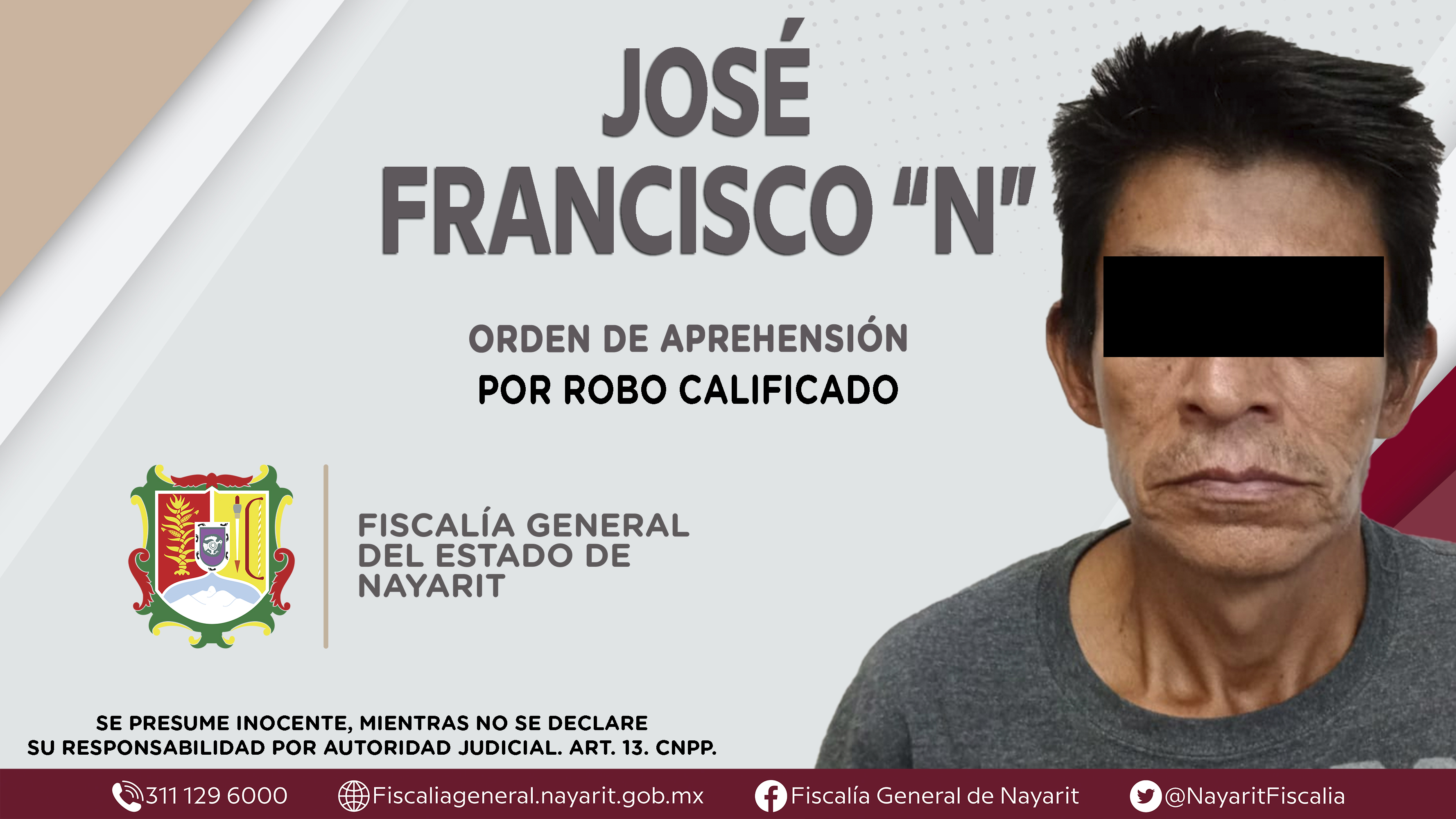 En la ciudad de Tepic, la Fiscalía General de Nayarit a través de la Agencia de Investigación Criminal ejecutó una orden de aprehensión contra José Francisco “N”, originario y vecino de la capital nayarita, por su presuntiva responsabilidad pen...
