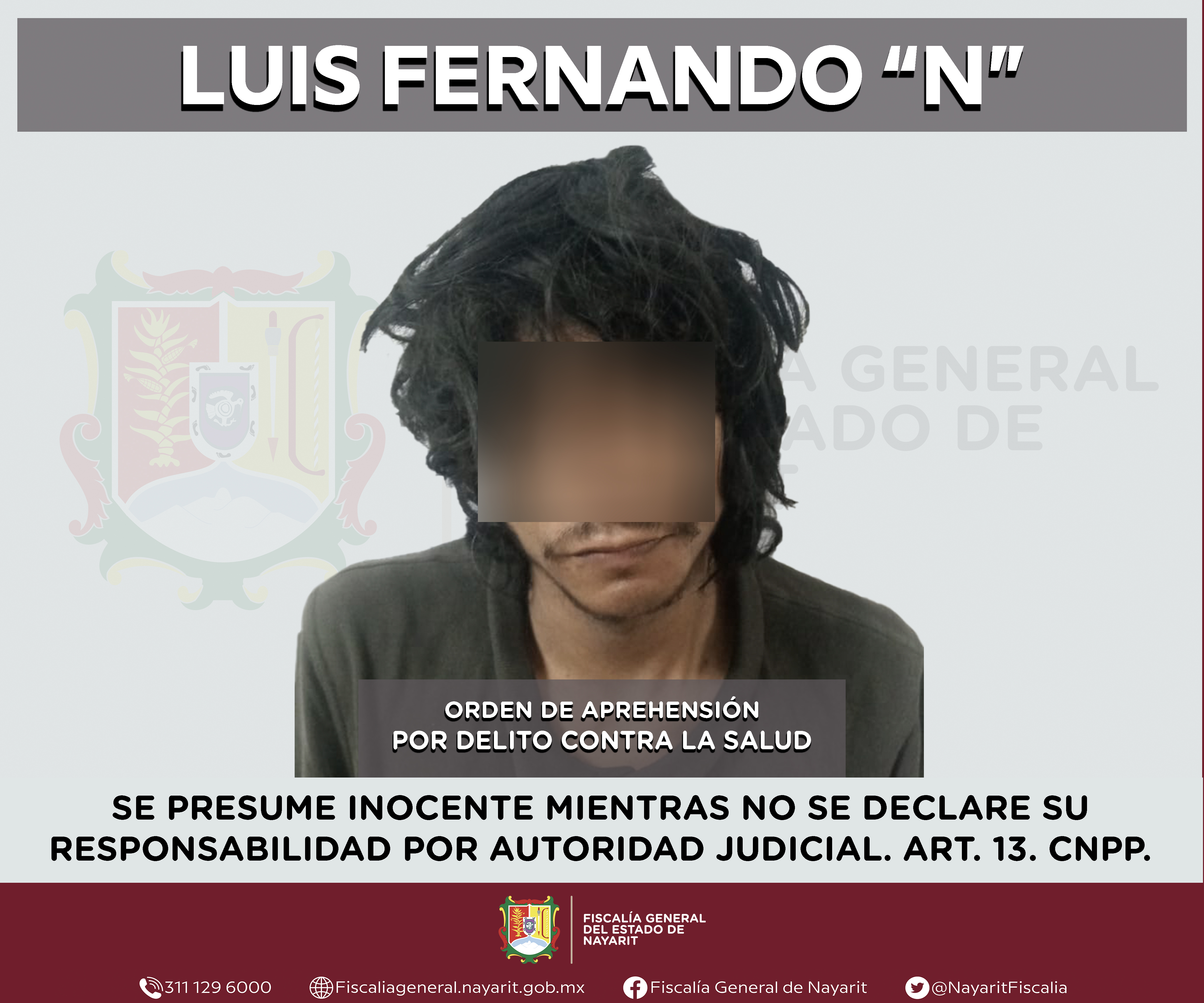 La Fiscalía General del estado de Nayarit a través de la Agencia de Investigación Criminal ejecutó una orden de aprehensión en la ciudad de Tepic contra Luis Fernando “N”, por su presunta participación en hechos que según valoración de la ley...