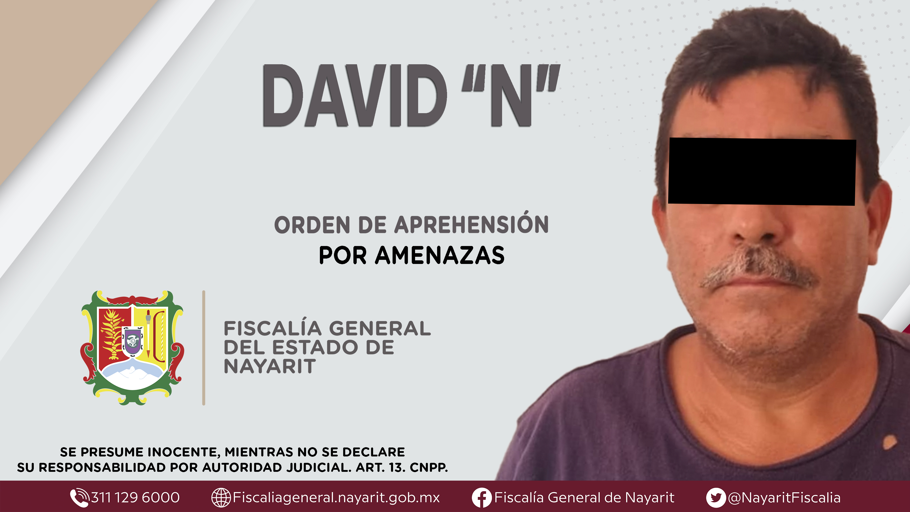 La Fiscalía General del Estado a través de la Agencia de Investigación Criminal dio cumplimiento a una orden de aprehensión en el municipio de Ruiz contra contra David “N”, por su presunta participación en hechos que según apreciación de la le...