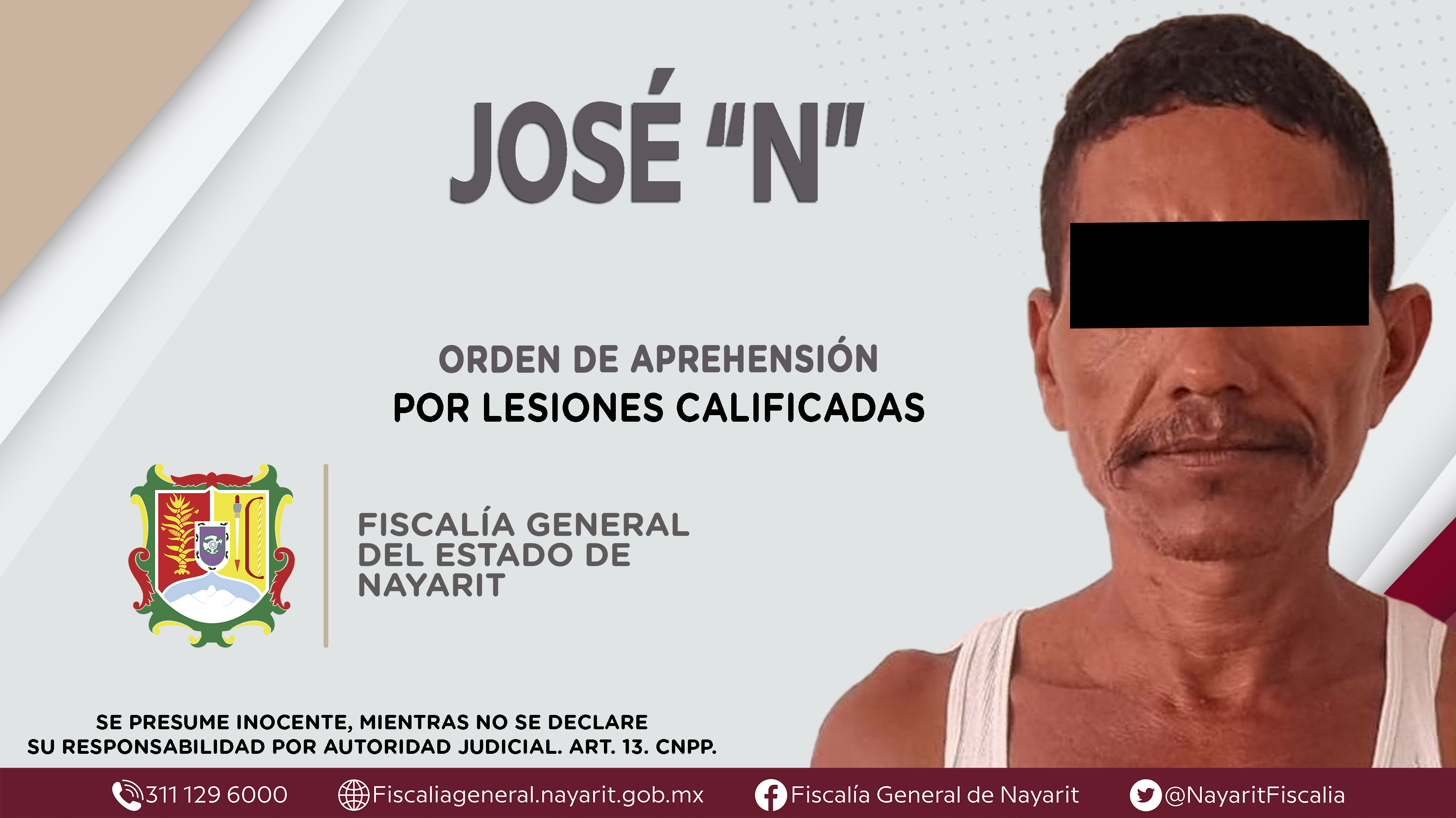 Elementos de la Agencia de Investigación Criminal de Nayarit ejecutaron una orden de aprehensión en el municipio de Ruiz contra José “N”, por su presunta participación en hechos que según apreciación de la ley encuadran el delito de lesiones ca...