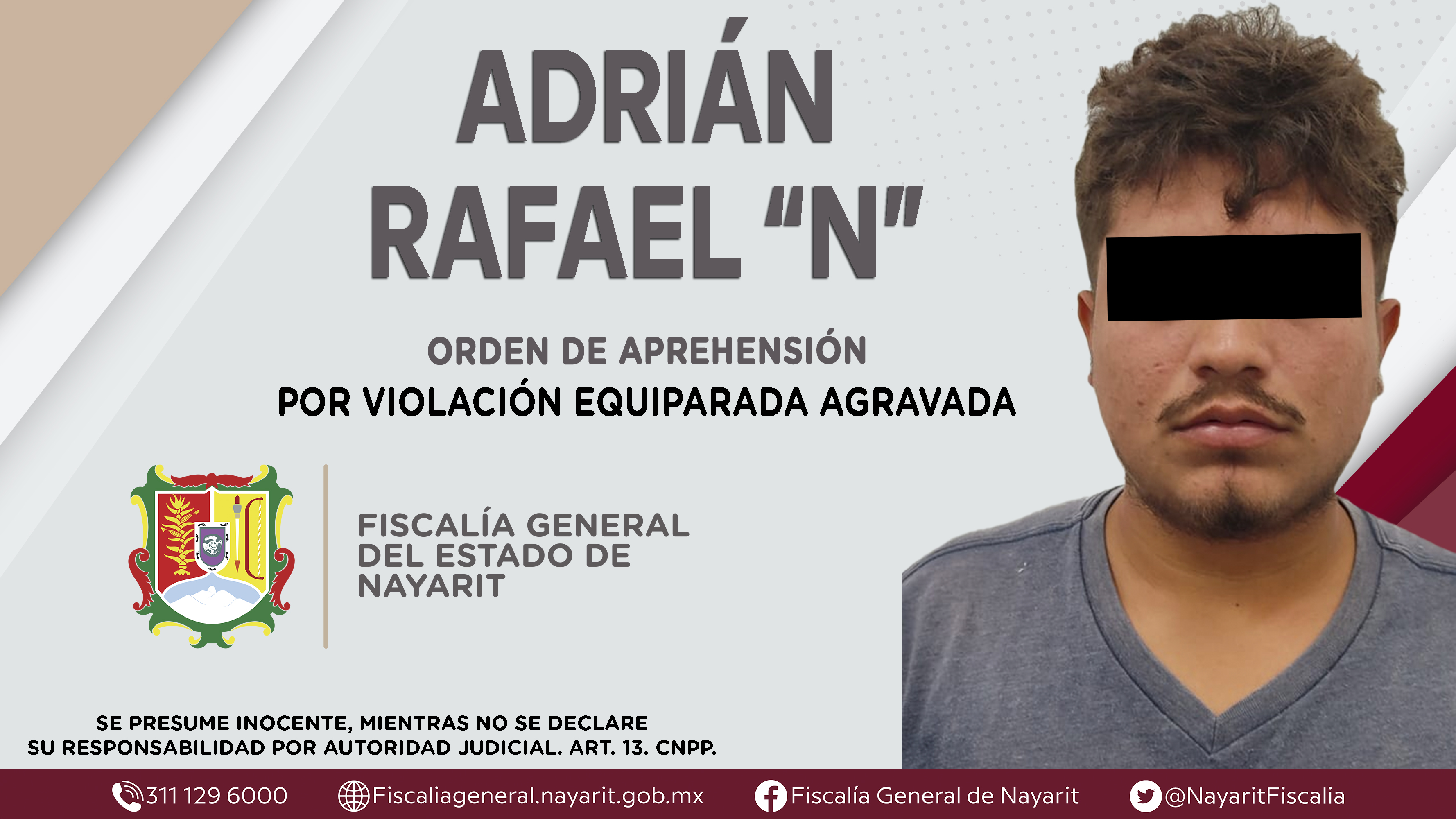 Elementos de la Agencia de Investigación Criminal ejecutaron una orden de aprehensión en el poblado Chulavista, municipio de Compostela contra Adrián Rafael “N”, originario de la localidad San Francisco, Bahía de Banderas y vecino de Chulavista, ...