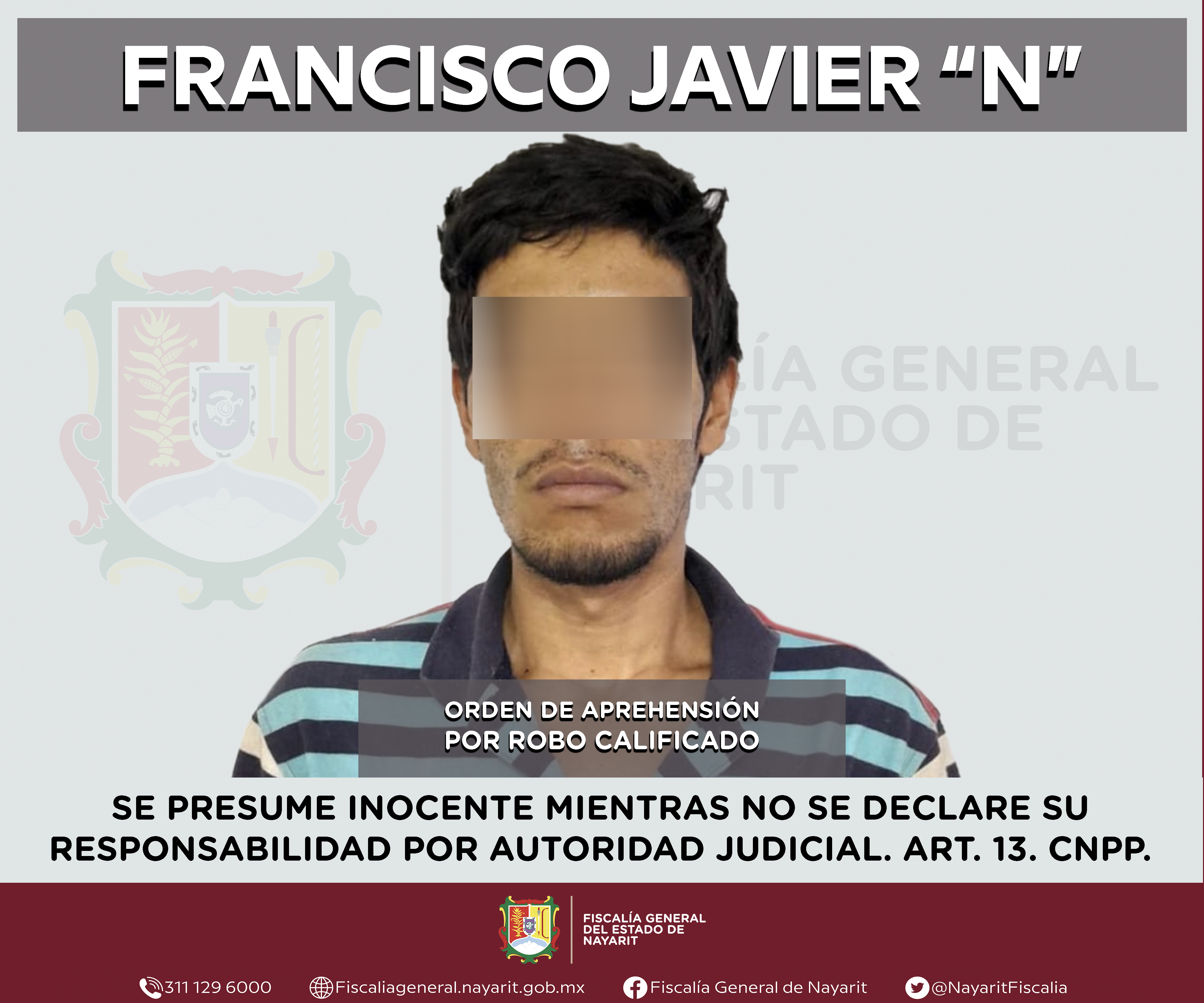 La Fiscalía General del estado de Nayarit a través de la Agencia de Investigación Criminal ejecutó una orden de aprehensión en la capital nayarita contra Francisco Javier “N”, por su presunta participación en hechos que según valoración de la...