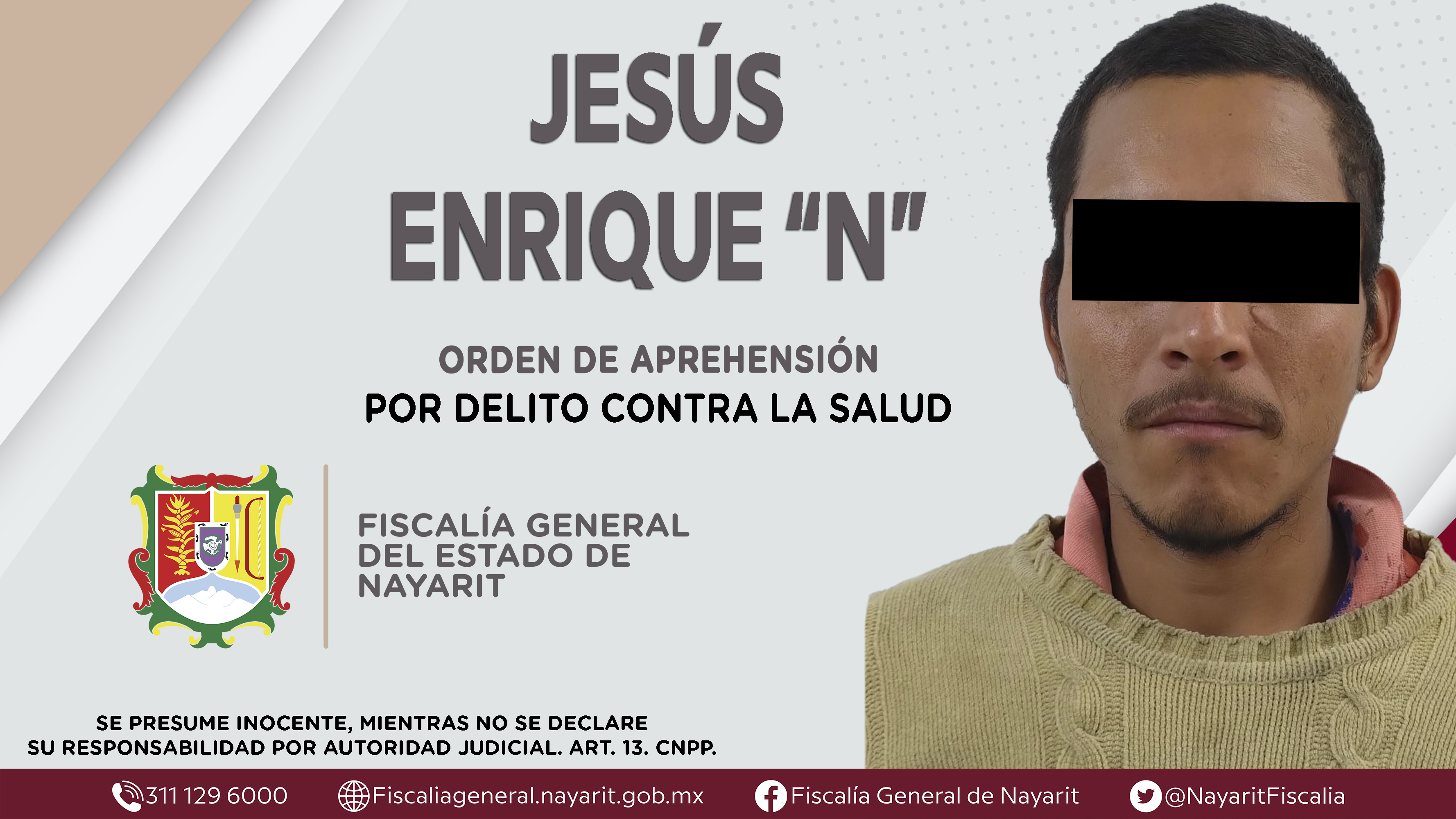 La Fiscalía General del Estado a través de la Agencia de Investigación Criminal dio cumplimiento a una orden de aprehensión en la ciudad de Tepic contra Jesús Enrique “N”, por su presunta participación en hechos que según apreciación de la le...