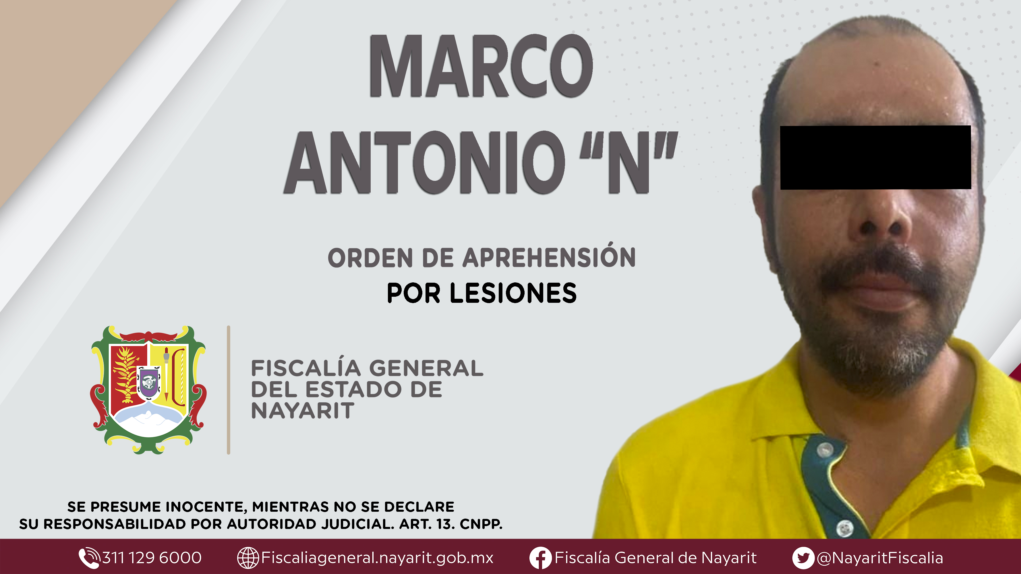 La Fiscalía General del Estado a través de la Agencia de Investigación Criminal dio cumplimiento a una orden de aprehensión en la localidad Jalcocotán, municipio de San Blas contra Marco Antonio “N”, por su presunta participación en hechos que ...