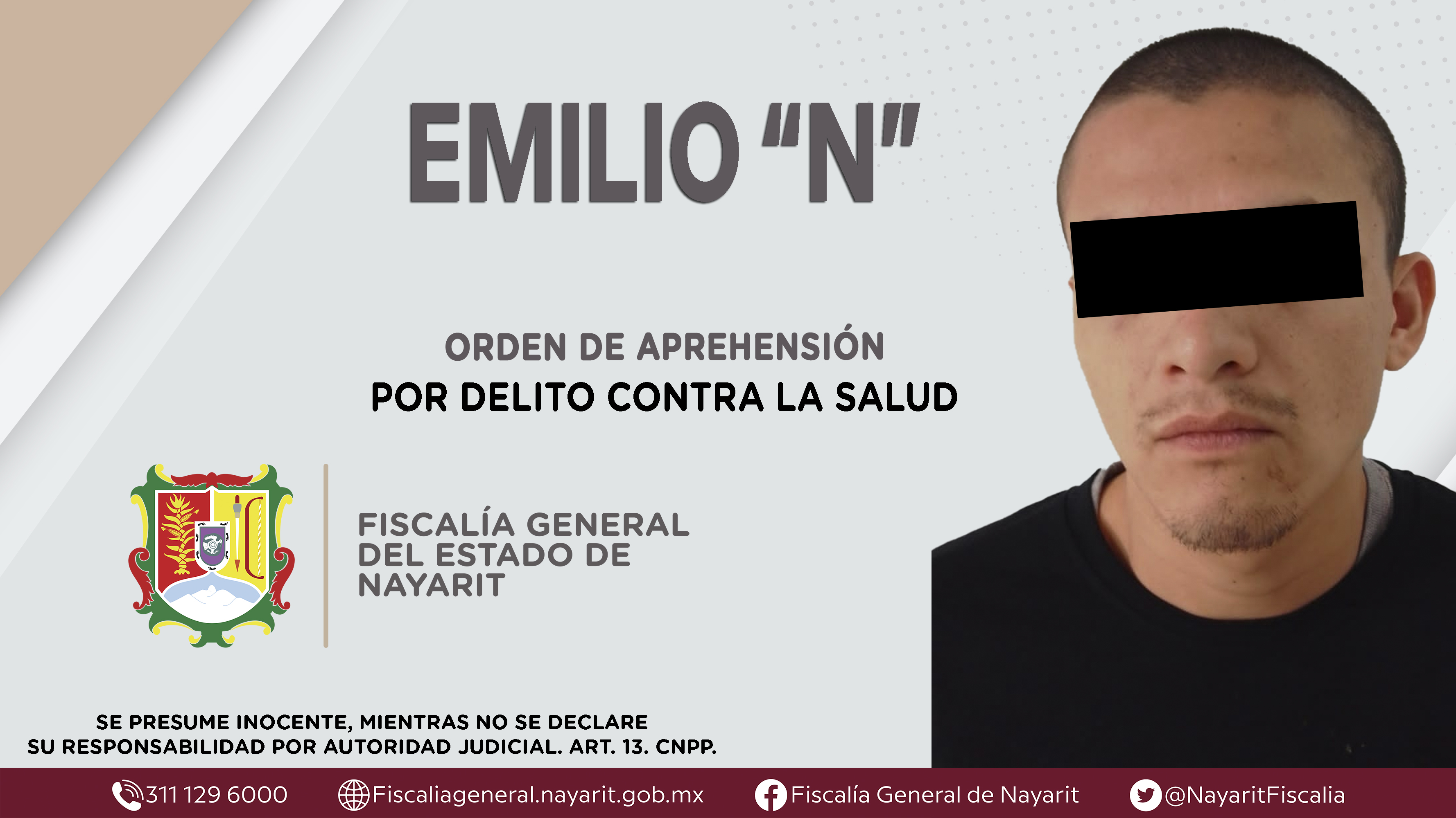 La Fiscalía General del Estado a través de la Agencia de Investigación Criminal dio cumplimiento a una orden de aprehensión en la ciudad de Tepic contra Emilio “N”, por su presunta participación en hechos que según apreciación de la ley config...