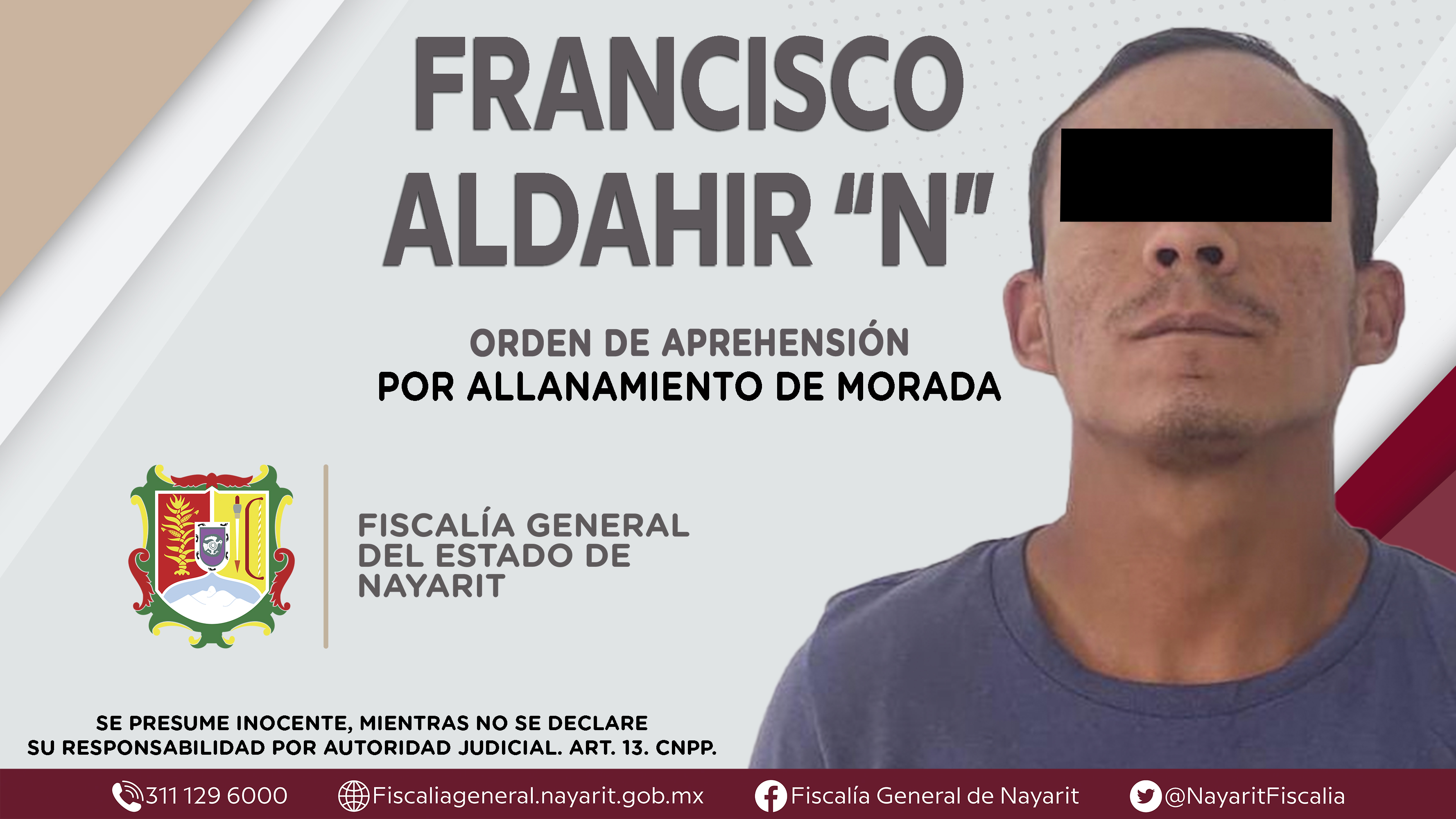 La Fiscalía General del Estado a través de la Agencia de Investigación Criminal dio cumplimiento a una orden de aprehensión en la ciudad de Tepic contra Francisco Aldahir “N”, por su presunta participación en hechos que bajo la apreciación de l...
