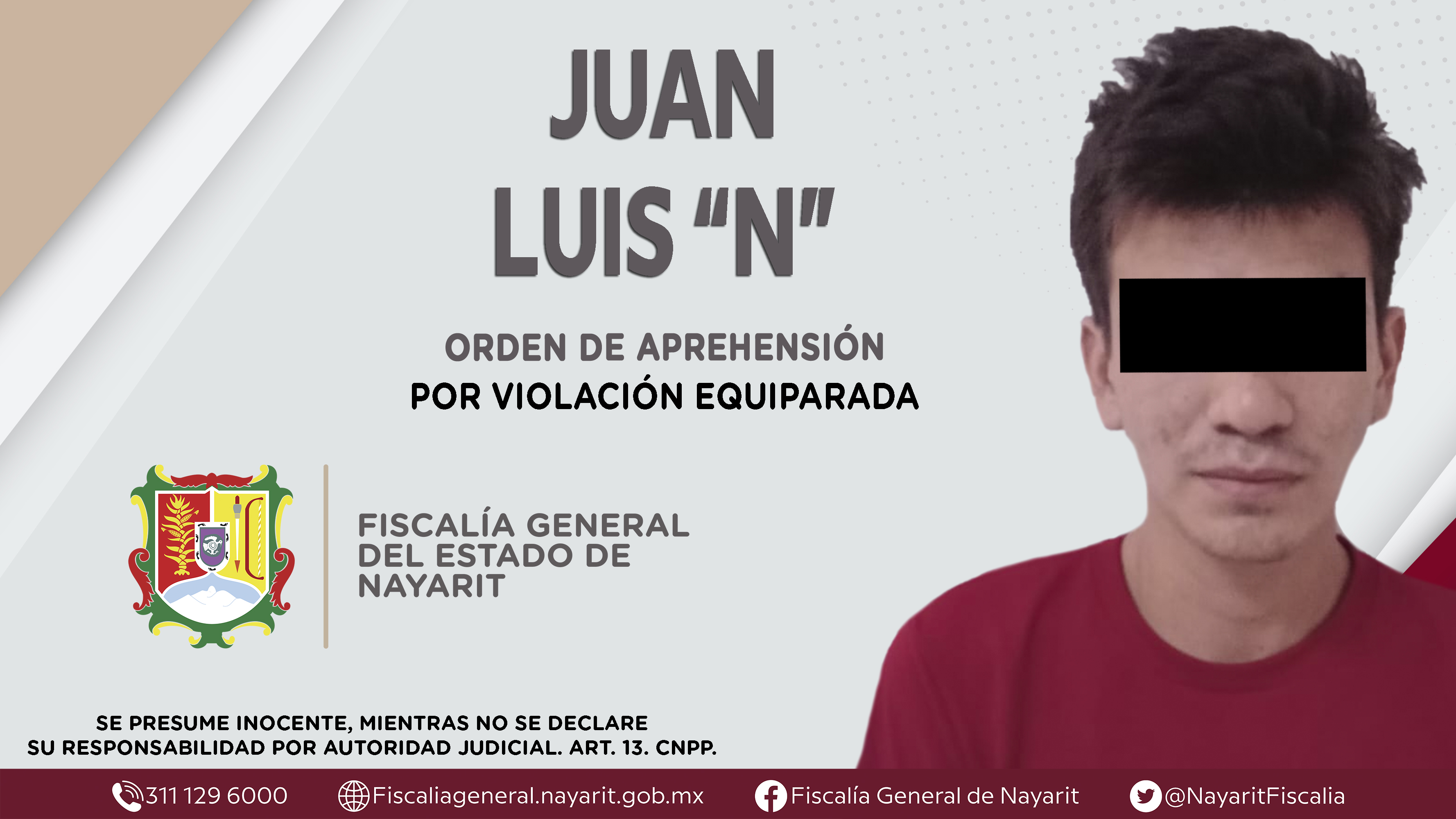 Elementos de la Agencia de Investigación Criminal de Nayarit ejecutaron una orden de aprehensión en el municipio de Tecuala contra Juan Luis “N”, por su presunta participación en hechos que según apreciación de la ley encuadran el delito de viol...