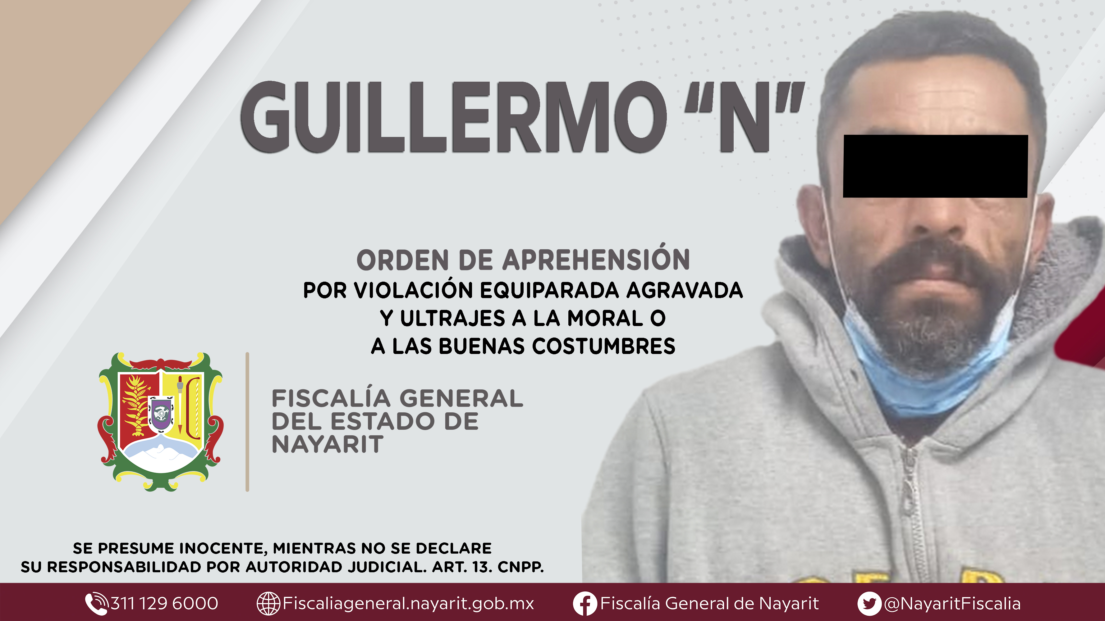 La Fiscalía General de Nayarit a través de la Agencia de Investigación Criminal ejecutó una orden de aprehensión contra Guillermo “N”, originario del estado de San Luis Potosí y vecino de la capital nayarita, por su presunta participación en h...