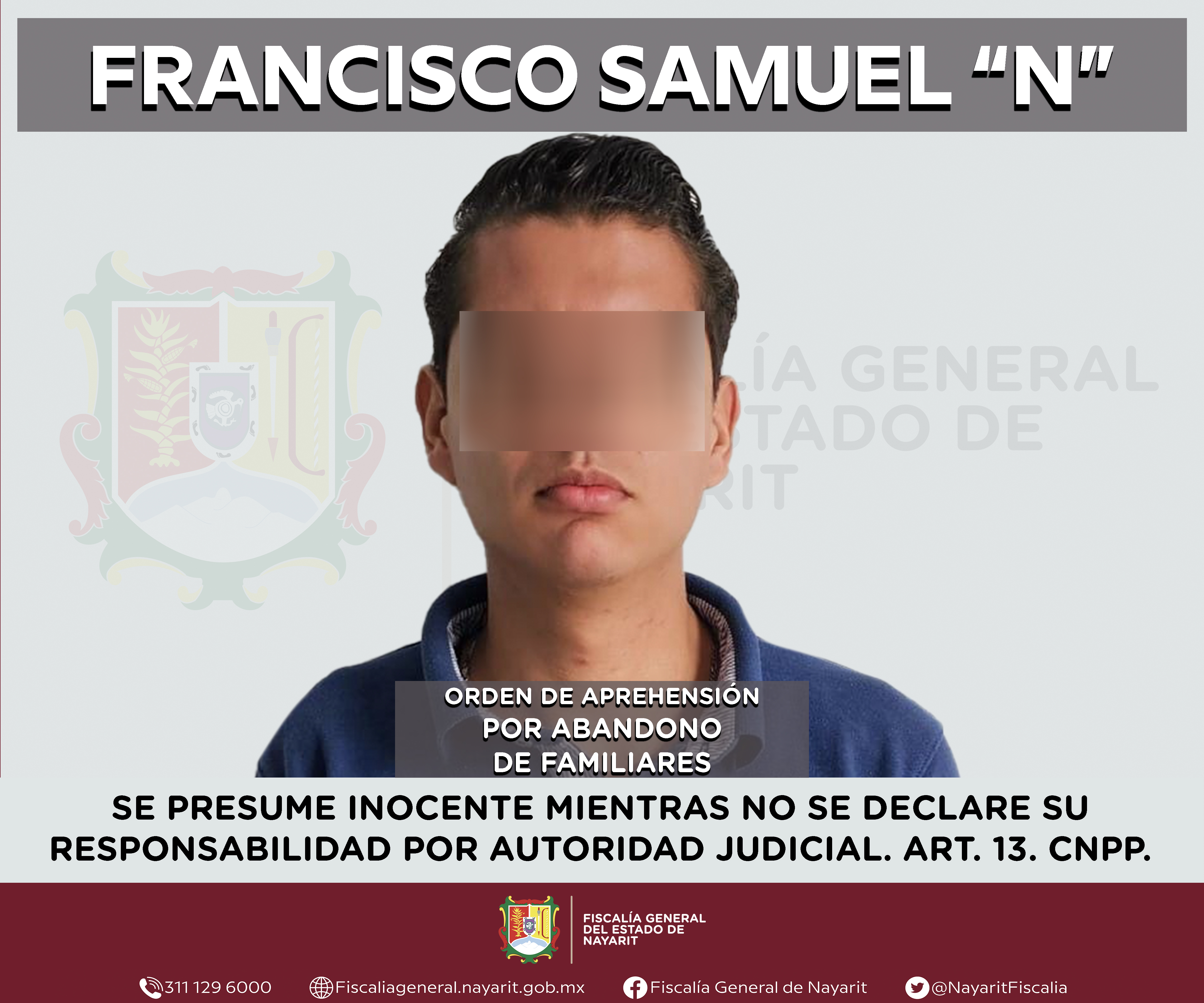La Fiscalía General de Nayarit a través de la Agencia de Investigación Criminal ejecutó una orden de aprehensión en la ciudad de Tepic contra Francisco Samuel “N”, por su probable participación en hechos que para la ley configuran el delito de ...