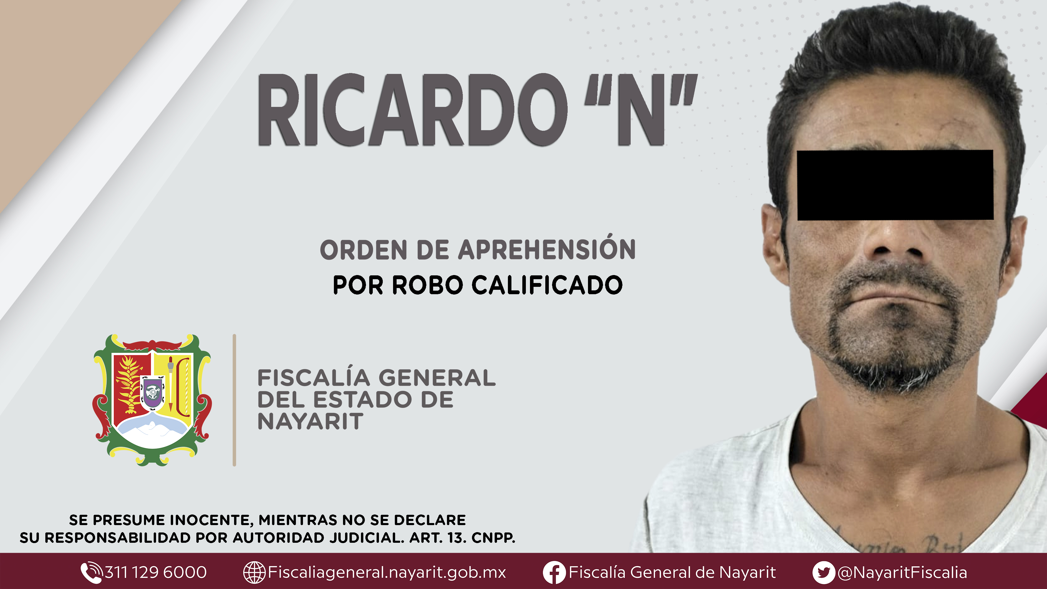 Elementos de la Agencia de Investigación Criminal de Nayarit ejecutaron una orden de aprehensión en la ciudad de Tepic contra Ricardo “N”, por su presunta participación en hechos que según apreciación de la ley encuadran el delito de robo califi...