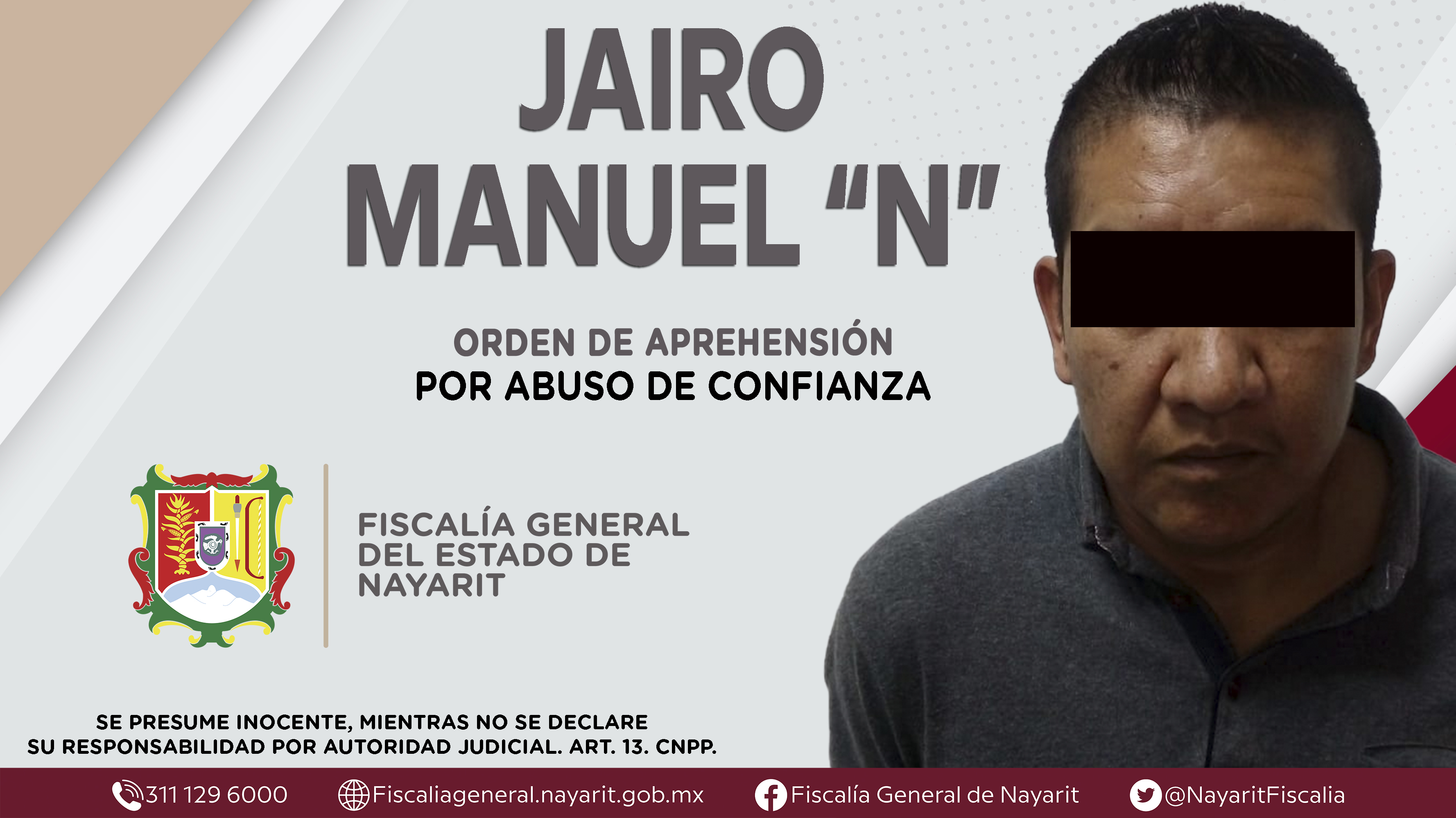 En la capital nayarita, la Fiscalía General a través de la Agencia de Investigación Criminal dio cumplimiento a una orden de aprehensión contra Jairo Manuel “N”, por su presunta participación en hechos que según apreciación de la ley encuadran...