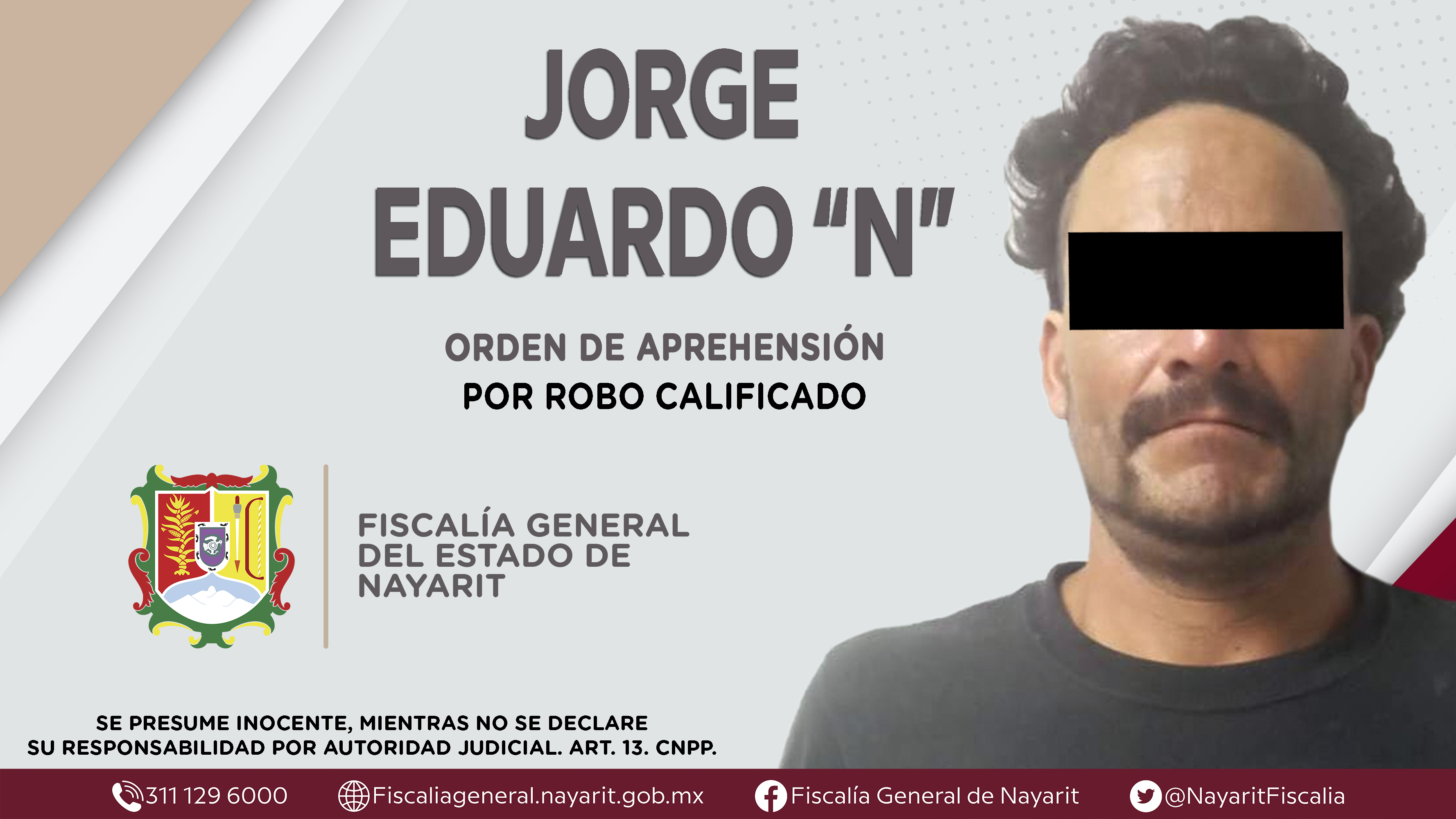 Elementos de la Agencia de Investigación Criminal de Nayarit ejecutaron una orden de aprehensión en la ciudad de Tepic contra Jorge Eduardo “N”, por su presunta participación en hechos que según apreciación de la ley encuadran el delito de robo ...