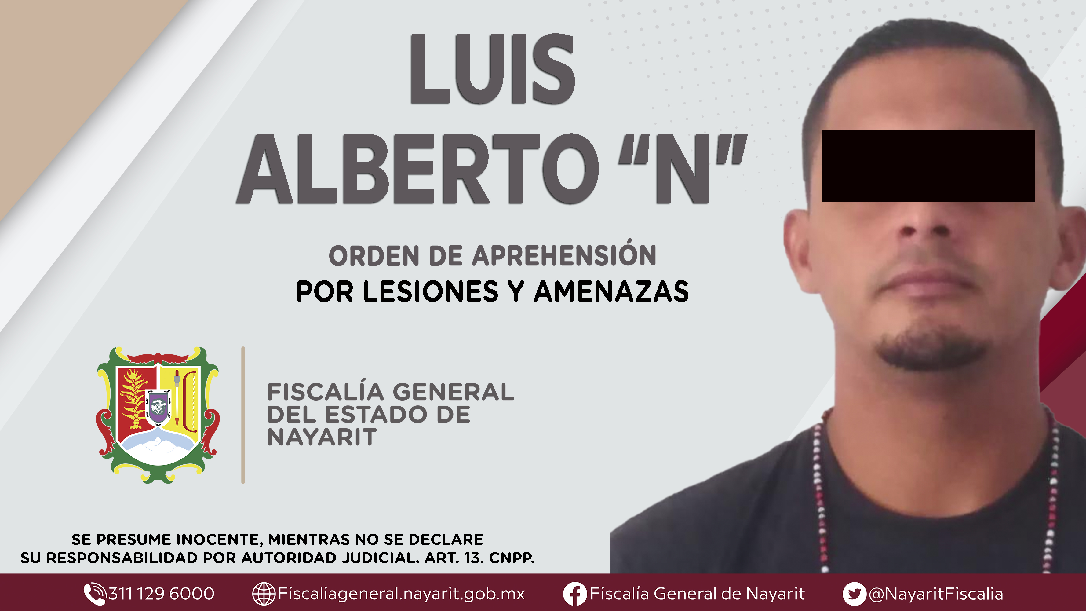 Elementos de la Agencia de Investigación Criminal dieron cumplimiento a una orden de aprehensión en el municipio de Santiago Ixcuintla contra Luis Alberto “N”, por su presunta participación en hechos que según apreciación de la ley encuadran los...