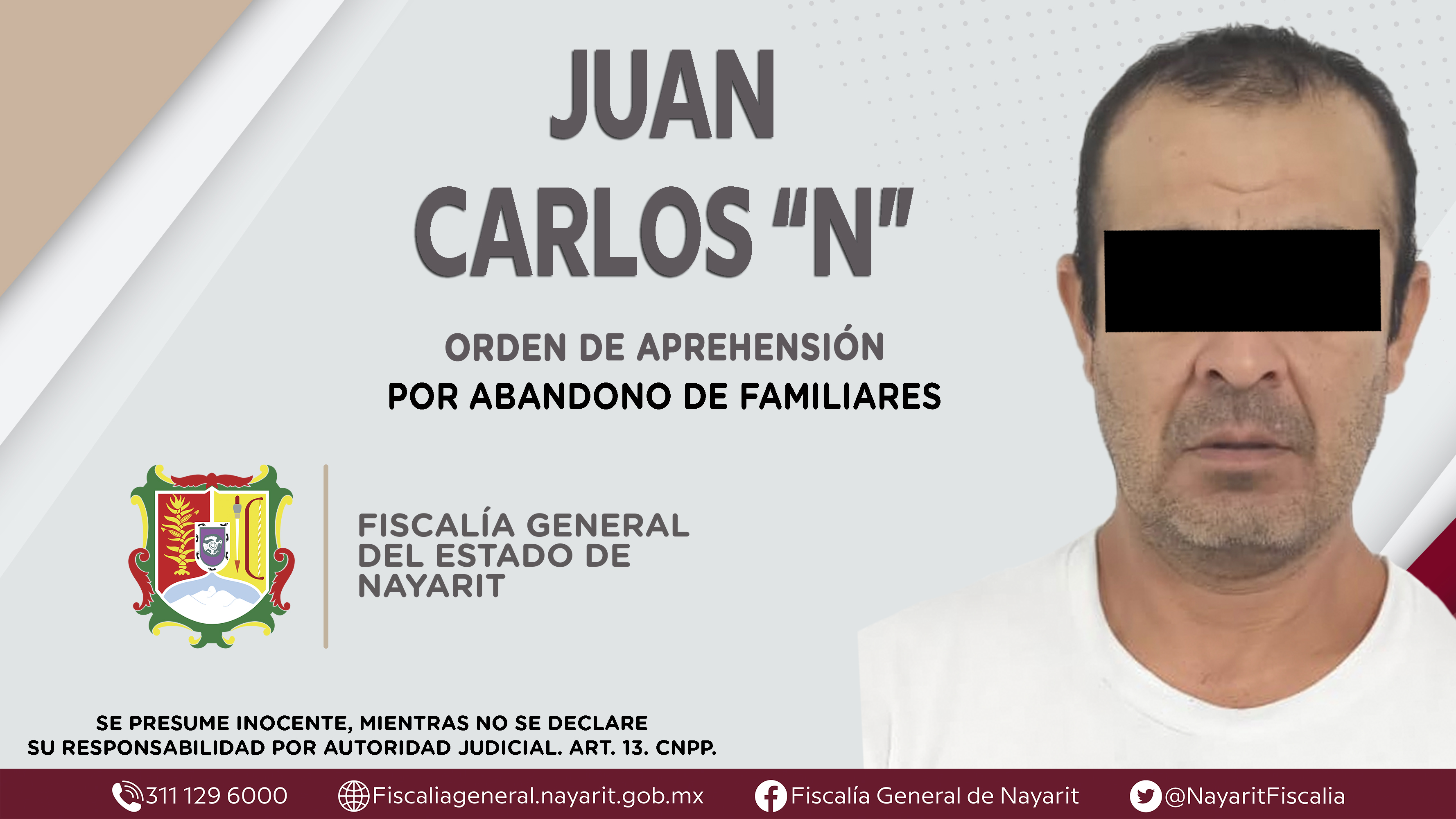 La Fiscalía General del Estado a través de la Agencia de Investigación Criminal dio cumplimiento a una orden de aprehensión en la ciudad de Tepic contra Juan Carlos “N”, por su presunta participación en hechos que según apreciación de la ley e...