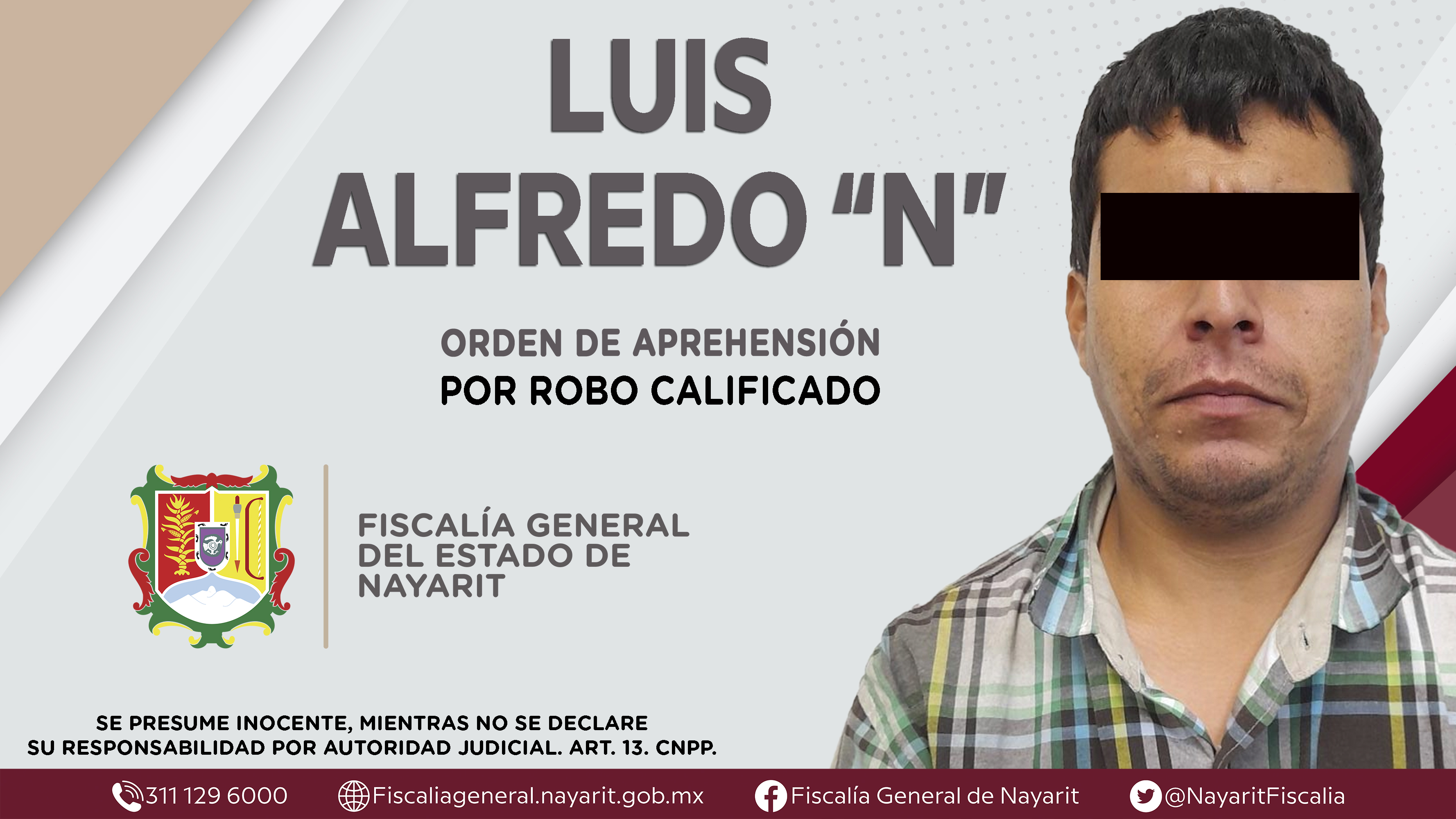 En la ciudad de Tepic, la Fiscalía General de Nayarit a través de la Agencia de Investigación Criminal dio cumplimiento a una orden de aprehensión contra Luis Alfredo “N”, quien es originario y vecino de la capital nayarita, por su presunta parti...