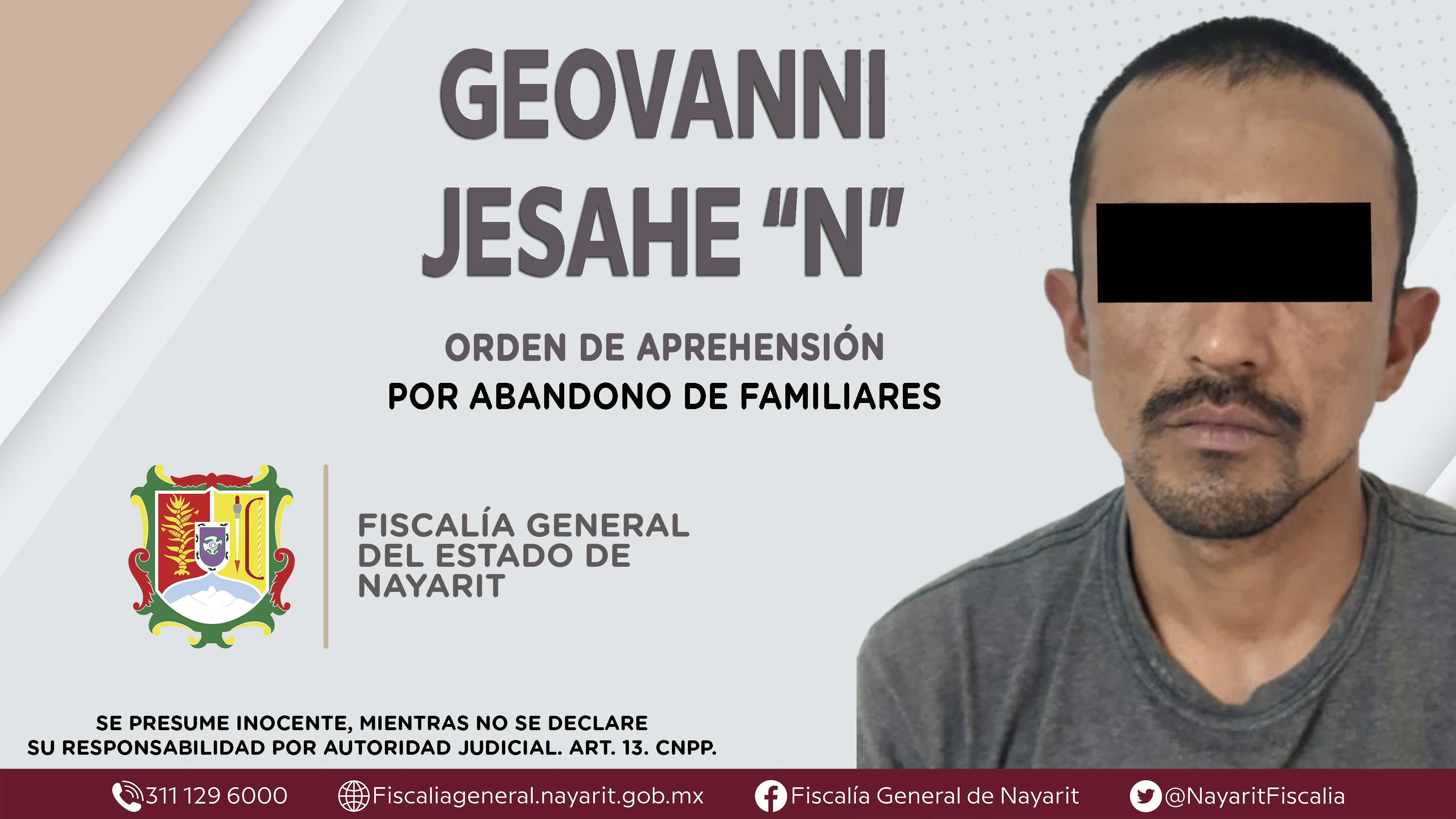 La Fiscalía General del Estado a través de la Agencia de Investigación Criminal dio cumplimiento a una orden de aprehensión en la ciudad de Tepic contra Geovanni Jesahe “N”, por su presunta participación en hechos que bajo la apreciación de la ...