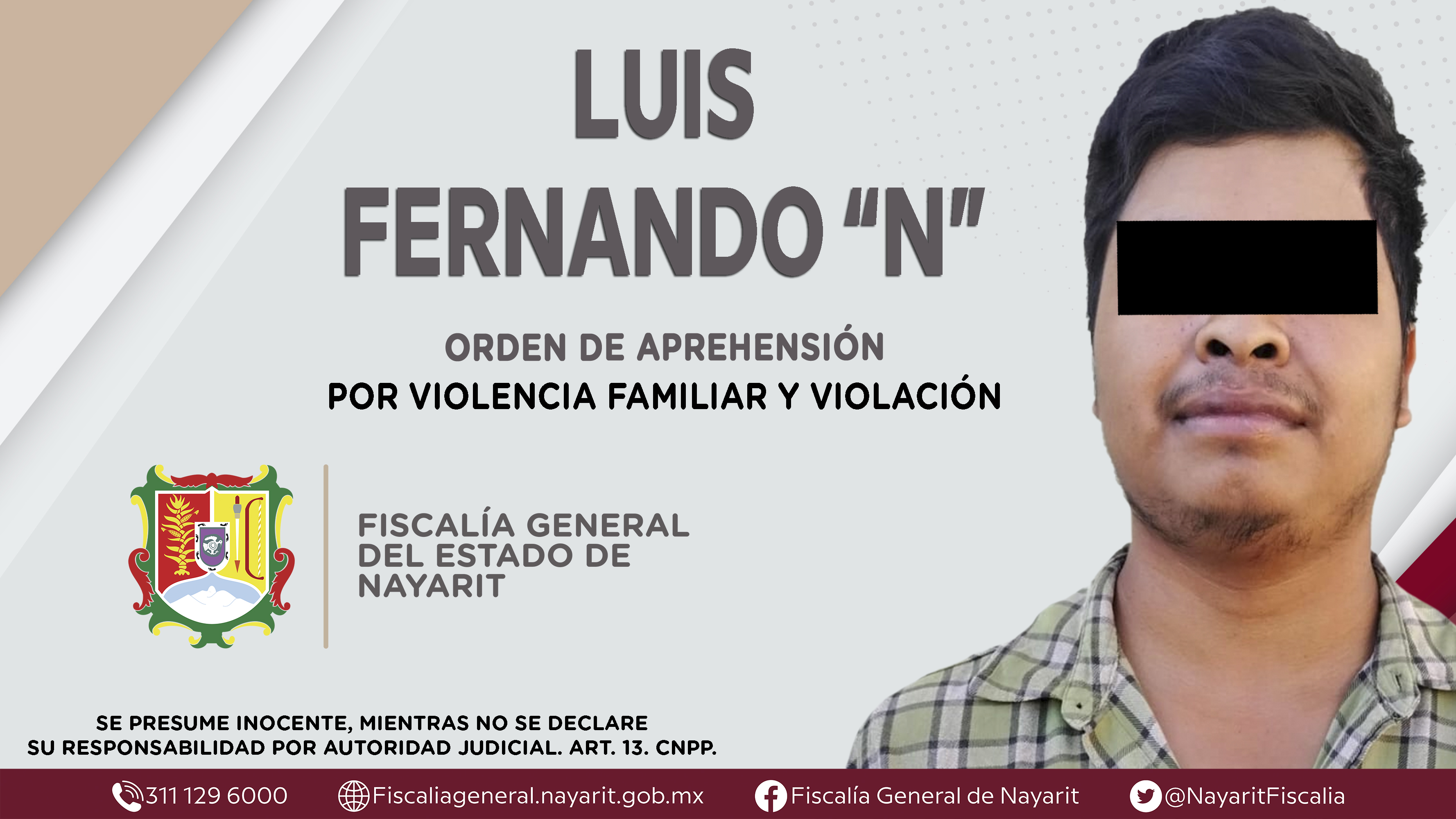 Elementos de la Agencia de Investigación Criminal de Nayarit ejecutaron una orden de aprehensión en la capital nayarita contra Luis Fernando “N”, por su presunta participación en hechos que según apreciación de la ley encuadran los delitos de vi...