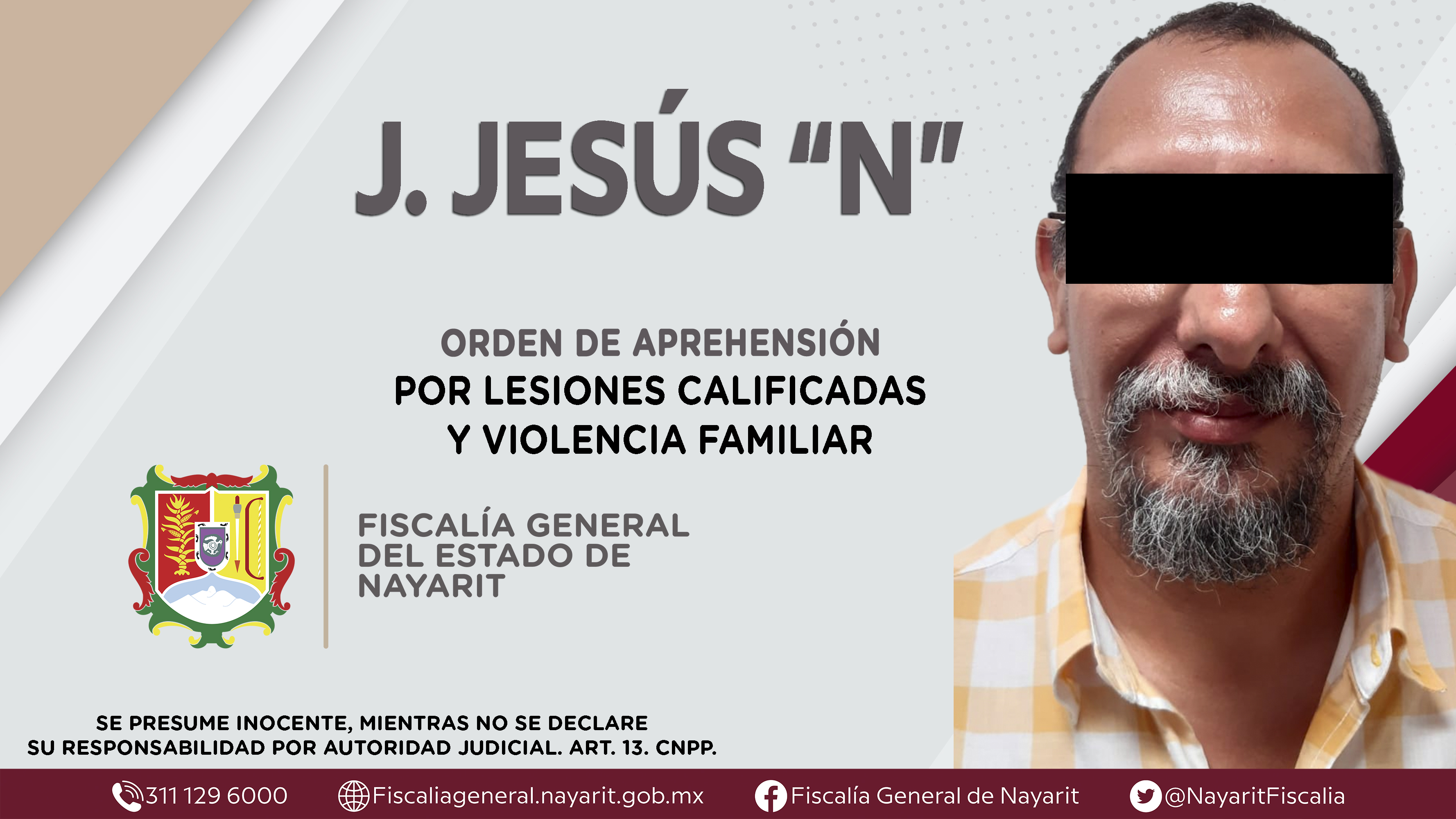 La Fiscalía General de Nayarit a través de la Agencia de Investigación Criminal dio cumplimiento a una orden de aprehensión en la ciudad de Tepic contra J. Jesús “N”, quien es originario y vecino de la capital nayarita, por su presunta responsab...