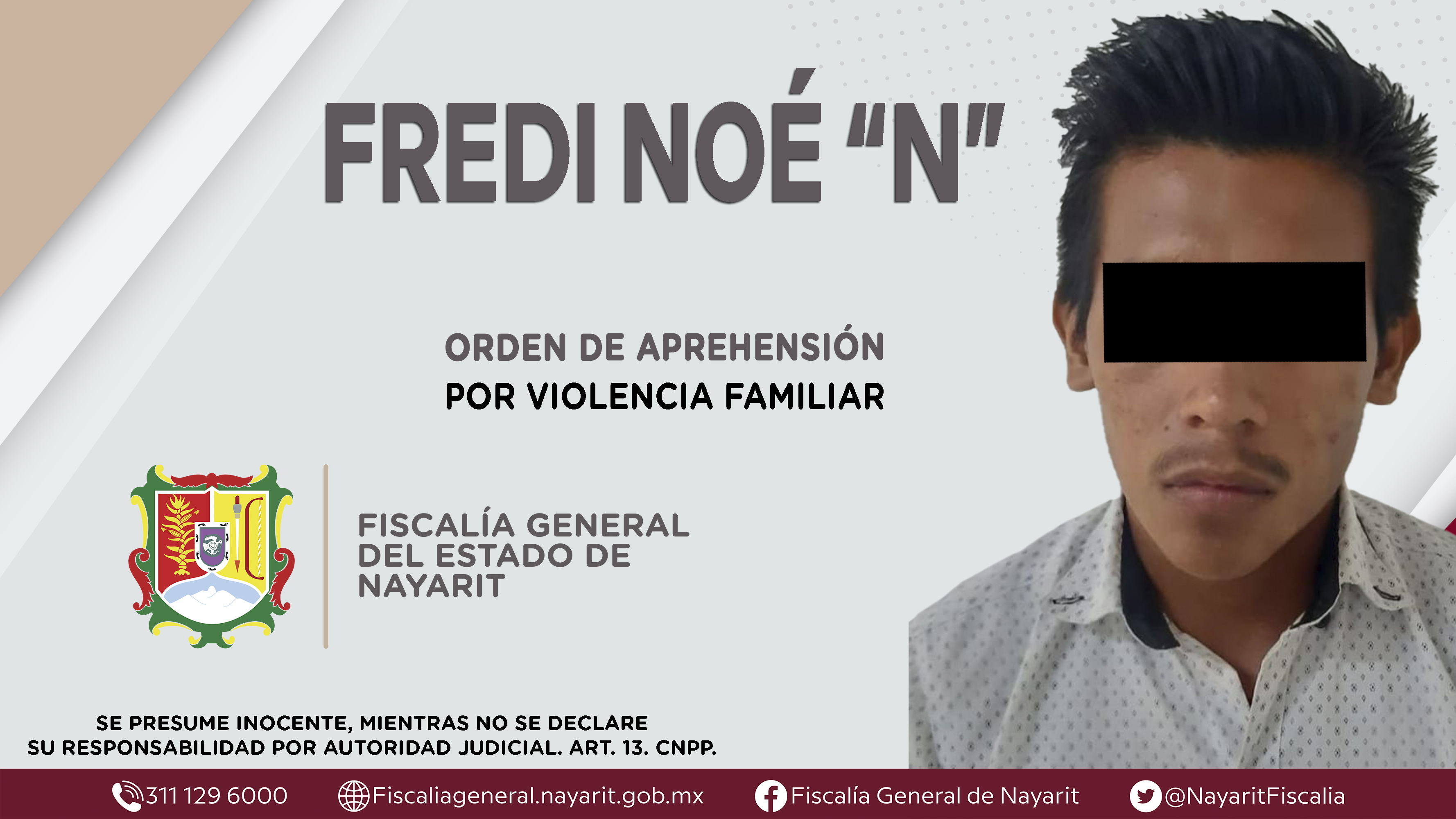 Elementos de la Agencia de Investigación Criminal de Nayarit ejecutaron una orden de aprehensión en la capital nayarita contra Fredi Noé “N”, por su presunta participación en hechos que según apreciación de la ley encuadran el delito de violenc...