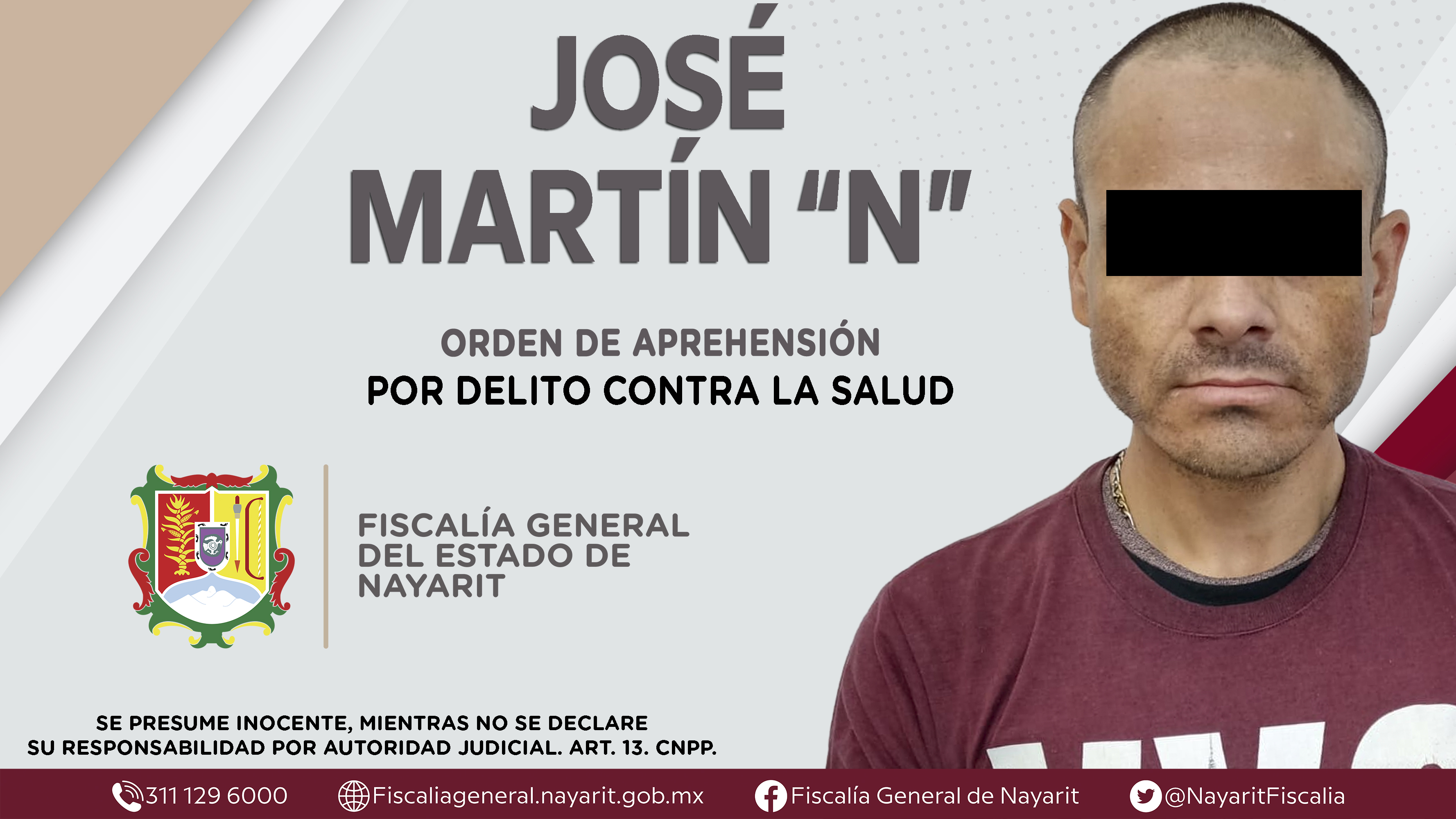En la ciudad de Tepic, la Fiscalía General de Nayarit a través de la Agencia de Investigación Criminal dio cumplimiento a una orden de aprehensión contra José Martín “N”, quien es originario y vecino de la capital nayarita, por su presunta resp...