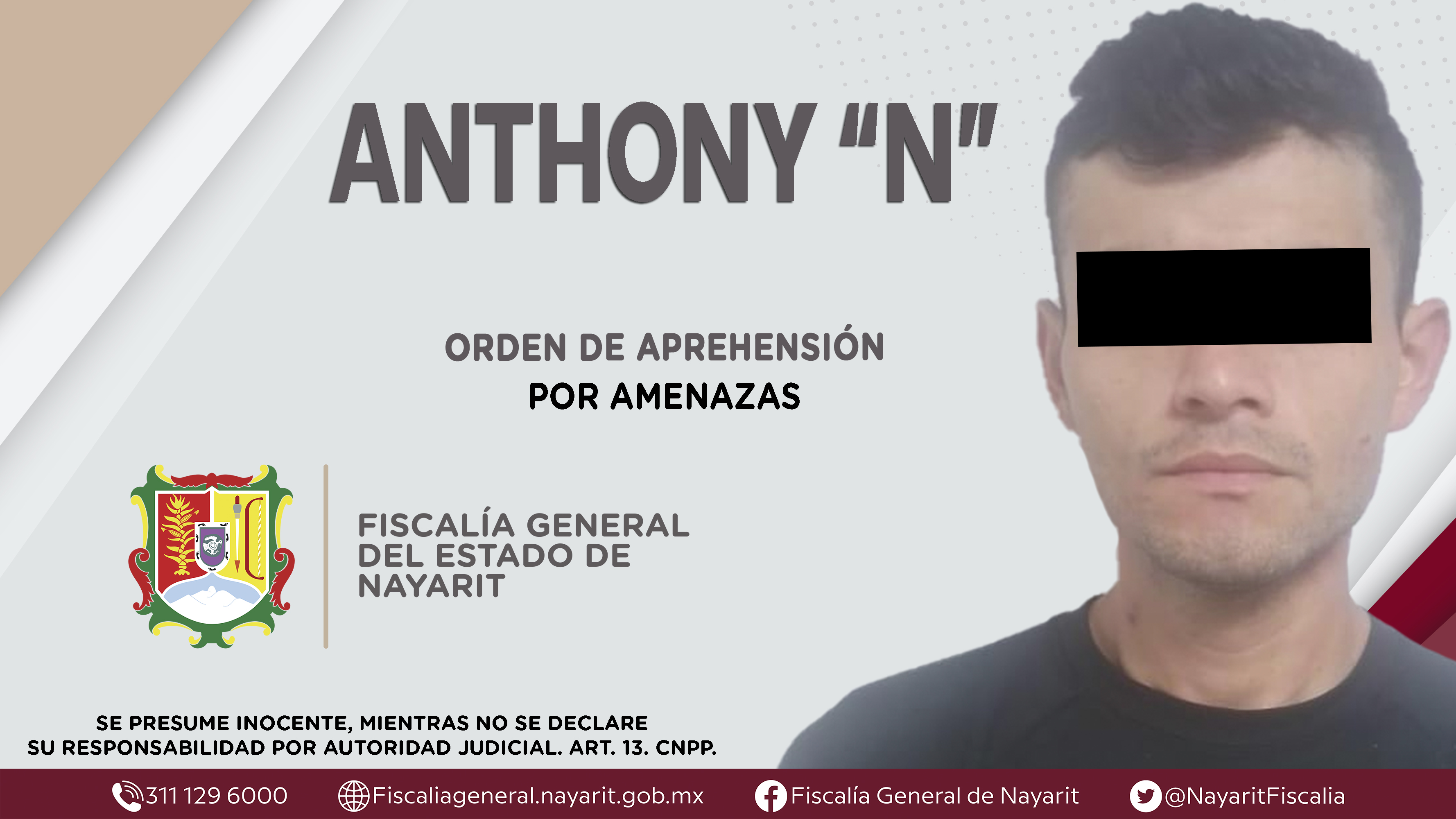 Elementos de la Agencia de Investigación Criminal de Nayarit ejecutaron una orden de aprehensión en la capital nayarita contra Anthony “N”, por su presunta participación en hechos que según apreciación de la ley encuadran el delito de amenazas, ...