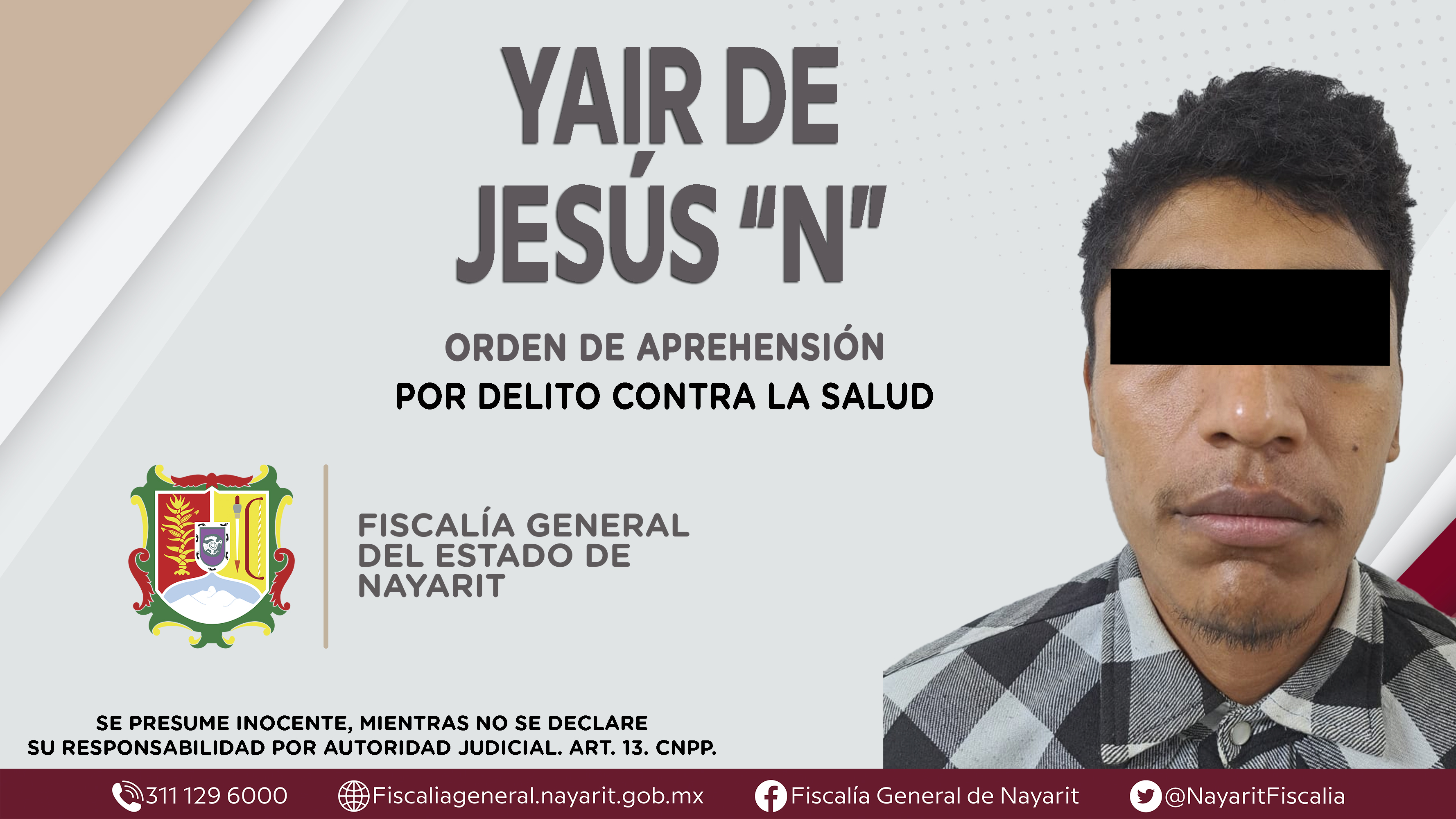 La Fiscalía General del Estado a través de la Agencia de Investigación Criminal dio cumplimiento a una orden de aprehensión en la capital nayarita contra Yair de Jesús “N”, por su presunta participación en hechos que bajo la apreciación de la ...