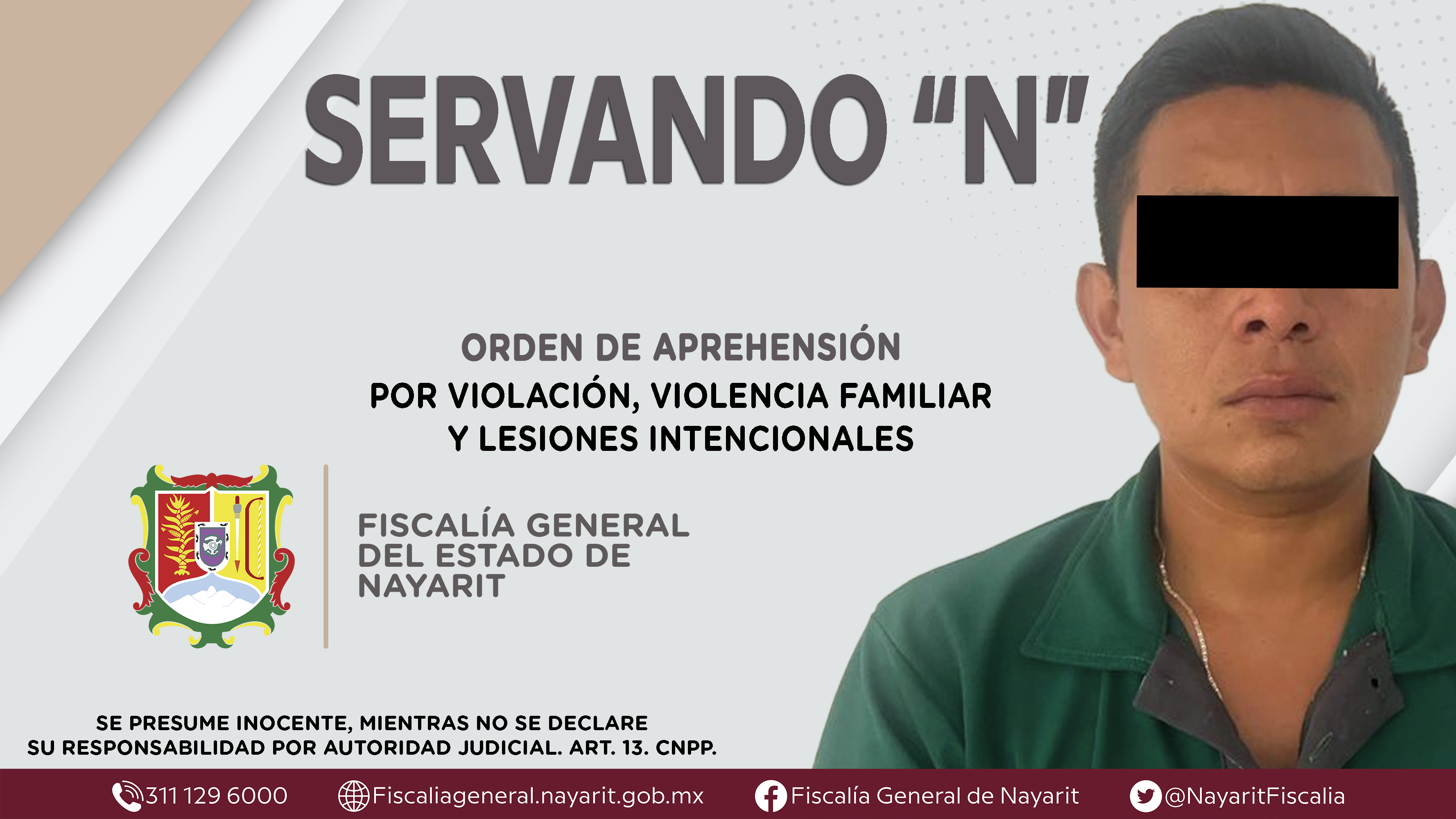 La Fiscalía General de Nayarit a través de la Agencia de Investigación Criminal dio cumplimiento a una orden de aprehensión en el municipio de Tecuala contra Servando “N”, por su presunta participación en hechos que según apreciación de la ley...