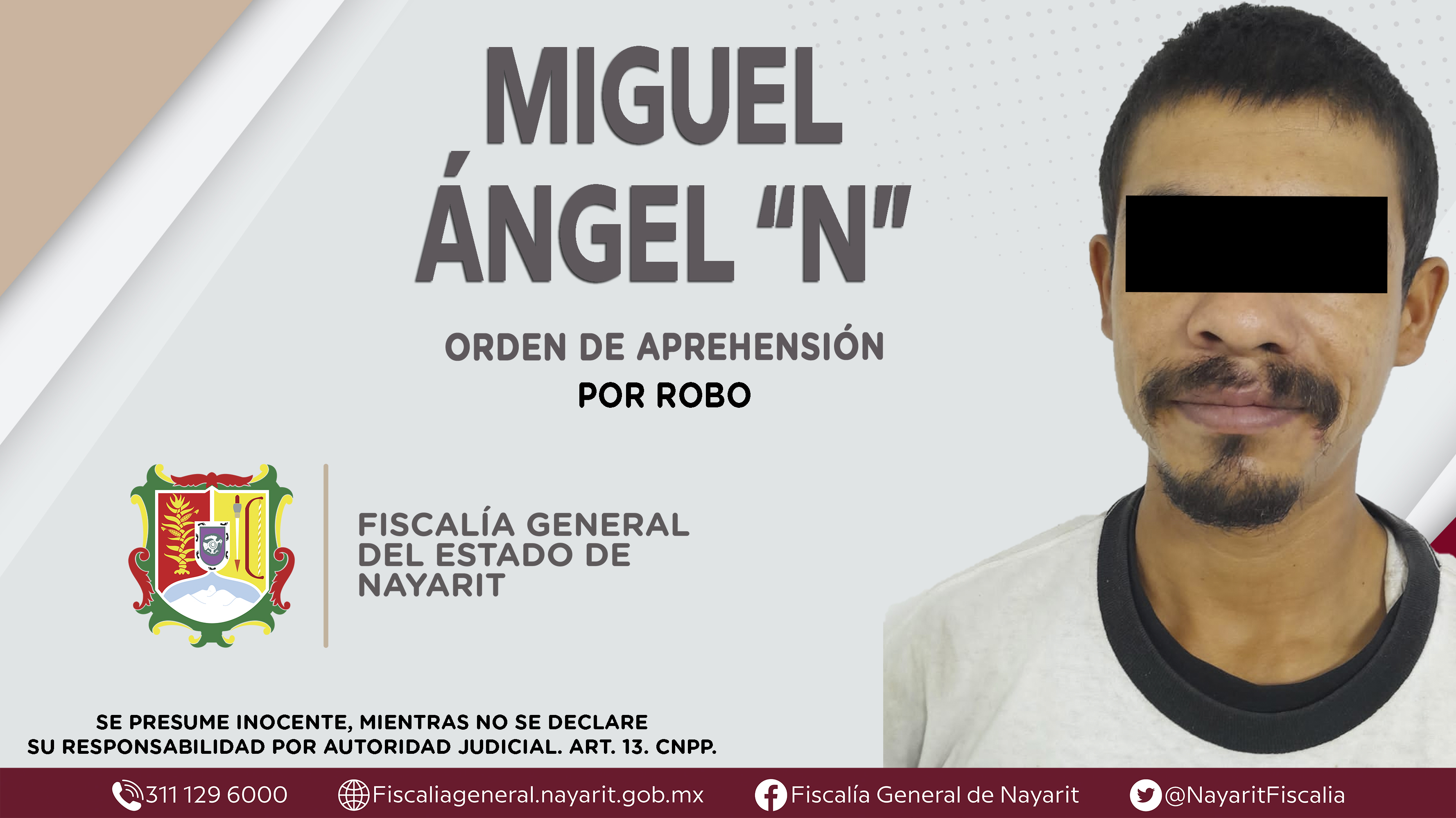 La Fiscalía General de Nayarit a través de la Agencia de Investigación Criminal dio cumplimiento a una orden de aprehensión en la ciudad de Tepic contra Miguel Ángel “N”, por su presunta participación en hechos que según apreciación de la ley...