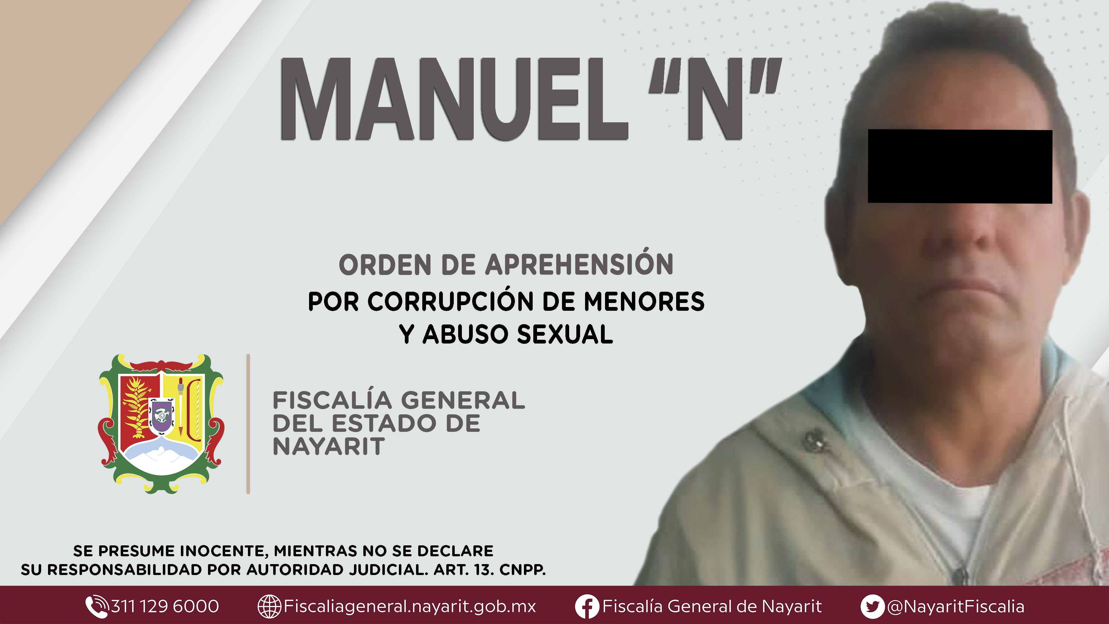 La Fiscalía General de Nayarit a través de la Agencia de Investigación Criminal dio cumplimiento a una orden de aprehensión en el municipio de Bahía Banderas contra Manuel “N”, por su presunta participación en hechos que según apreciación de ...