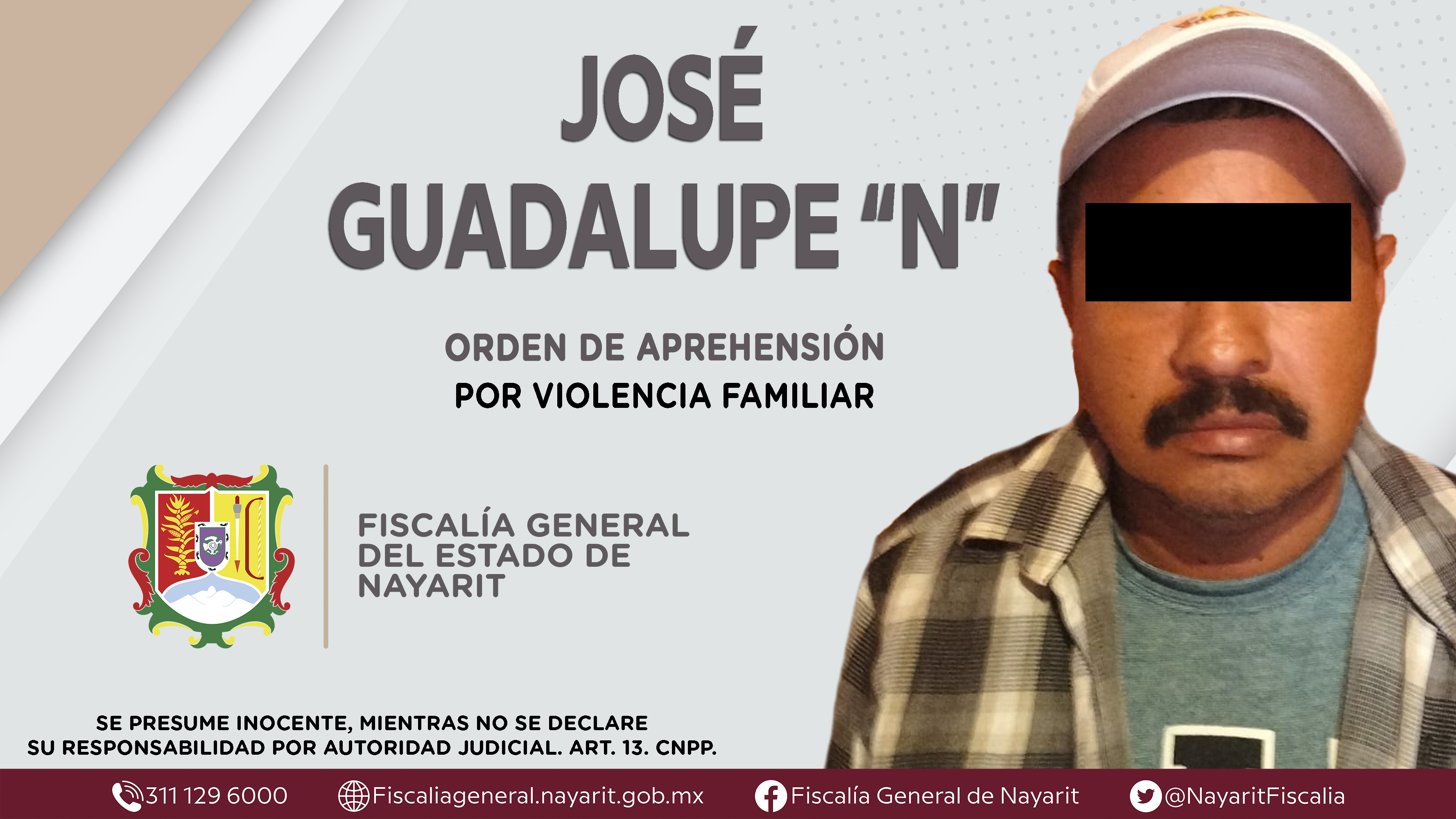 La Fiscalía General de Nayarit a través de la Agencia de Investigación Criminal dio cumplimiento a una orden de aprehensión en la localidad San Isidro, municipio de Compostela contra José Guadalupe “N”, por su presunta participación en hechos q...