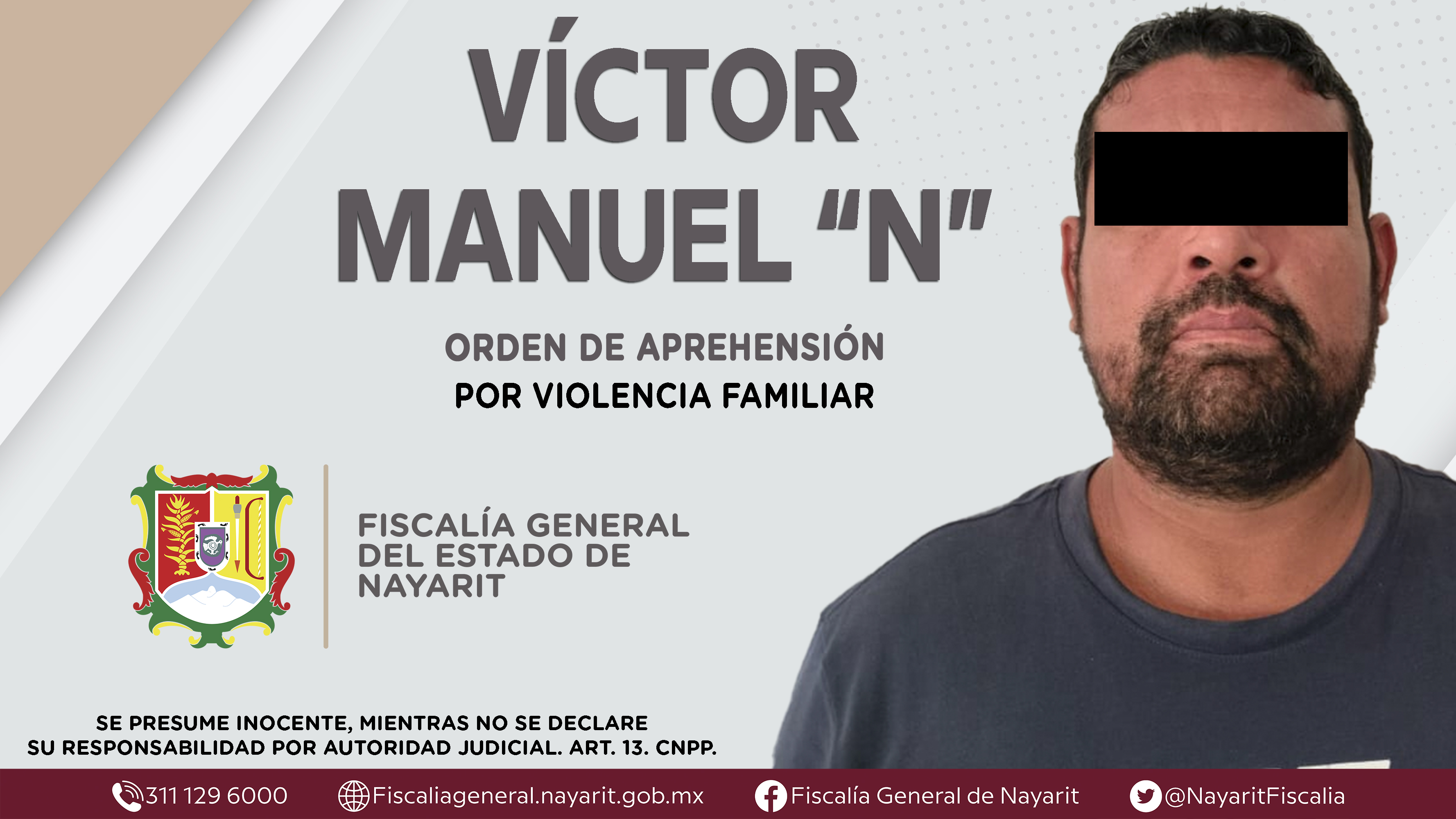 La Fiscalía General de Nayarit a través de la Agencia de Investigación Criminal dio cumplimiento a una orden de aprehensión en el municipio de Ruiz contra Víctor Manuel “N”, por su presunt...
