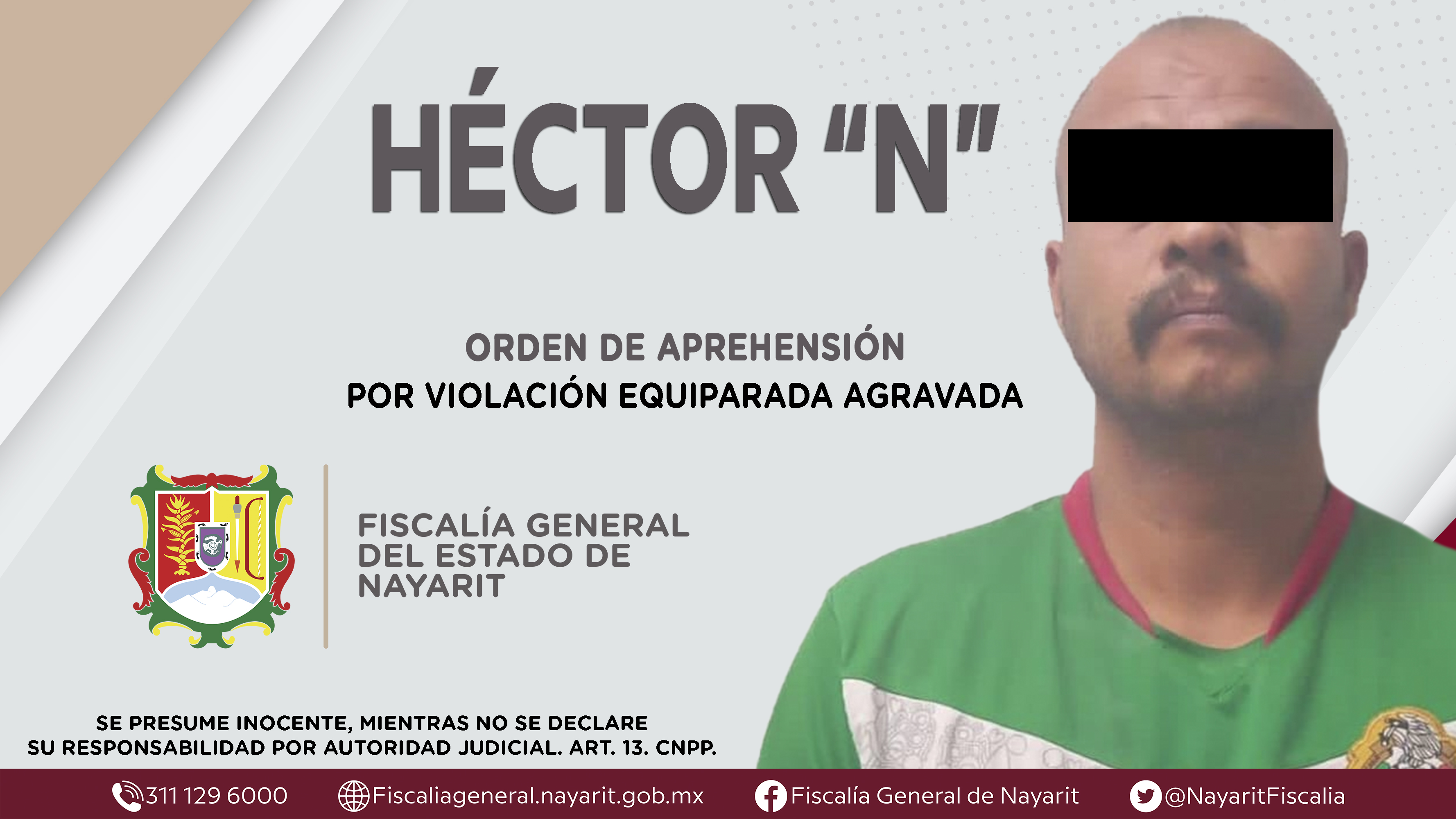 La Fiscalía General de Nayarit a través de la Agencia de Investigación Criminal dio cumplimiento a una orden de aprehensión en la capital nayarita contra Héctor “N”, por su presunta participación en hechos que según apreciación de la ley encu...