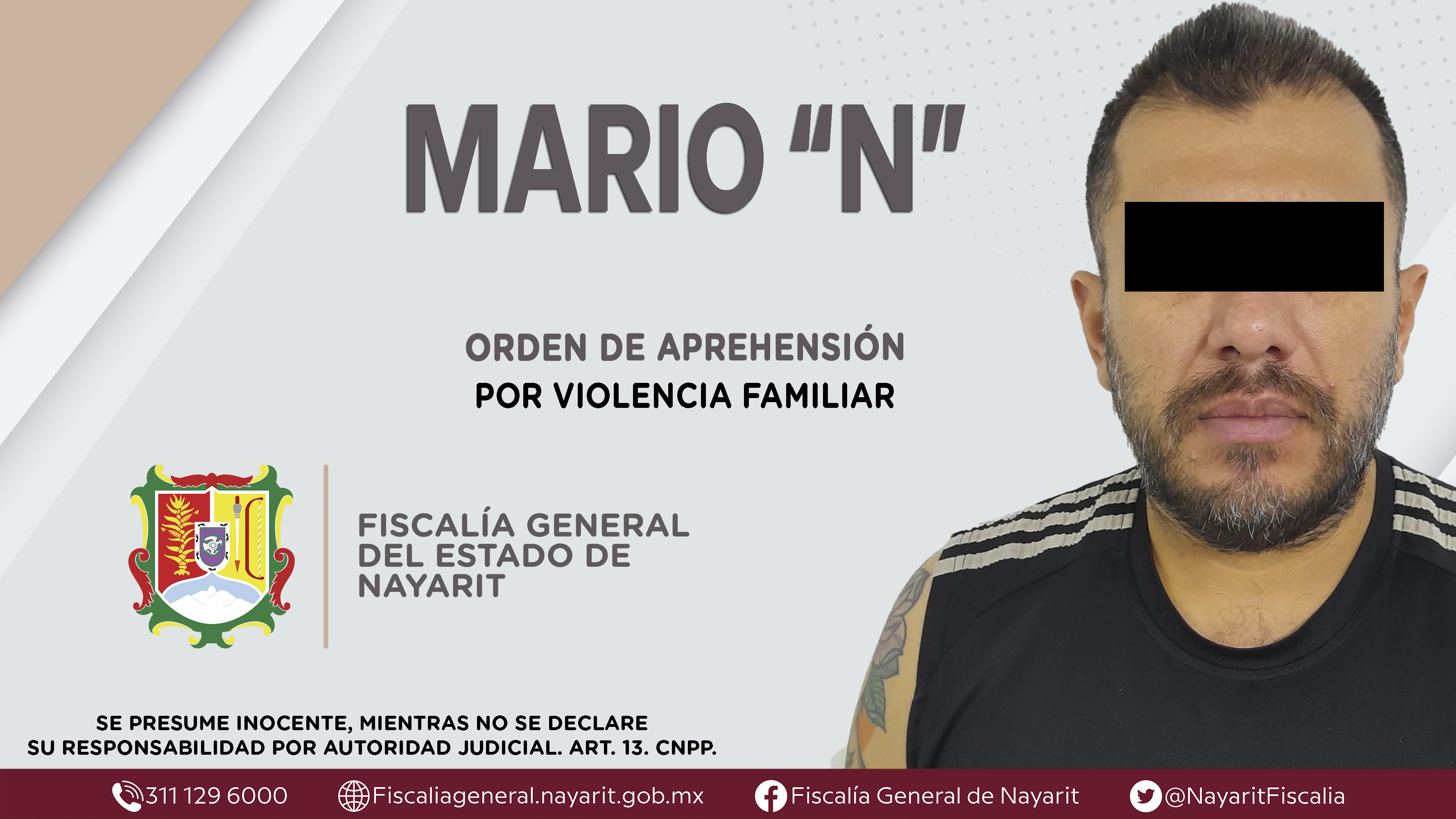 Elementos de la Agencia de Investigación Criminal de Nayarit ejecutaron una orden de aprehensión en la ciudad de Tepic contra Mario “N”, por su presunta participación en hechos que según apreciación de la ley encuadran el delito de violencia fam...