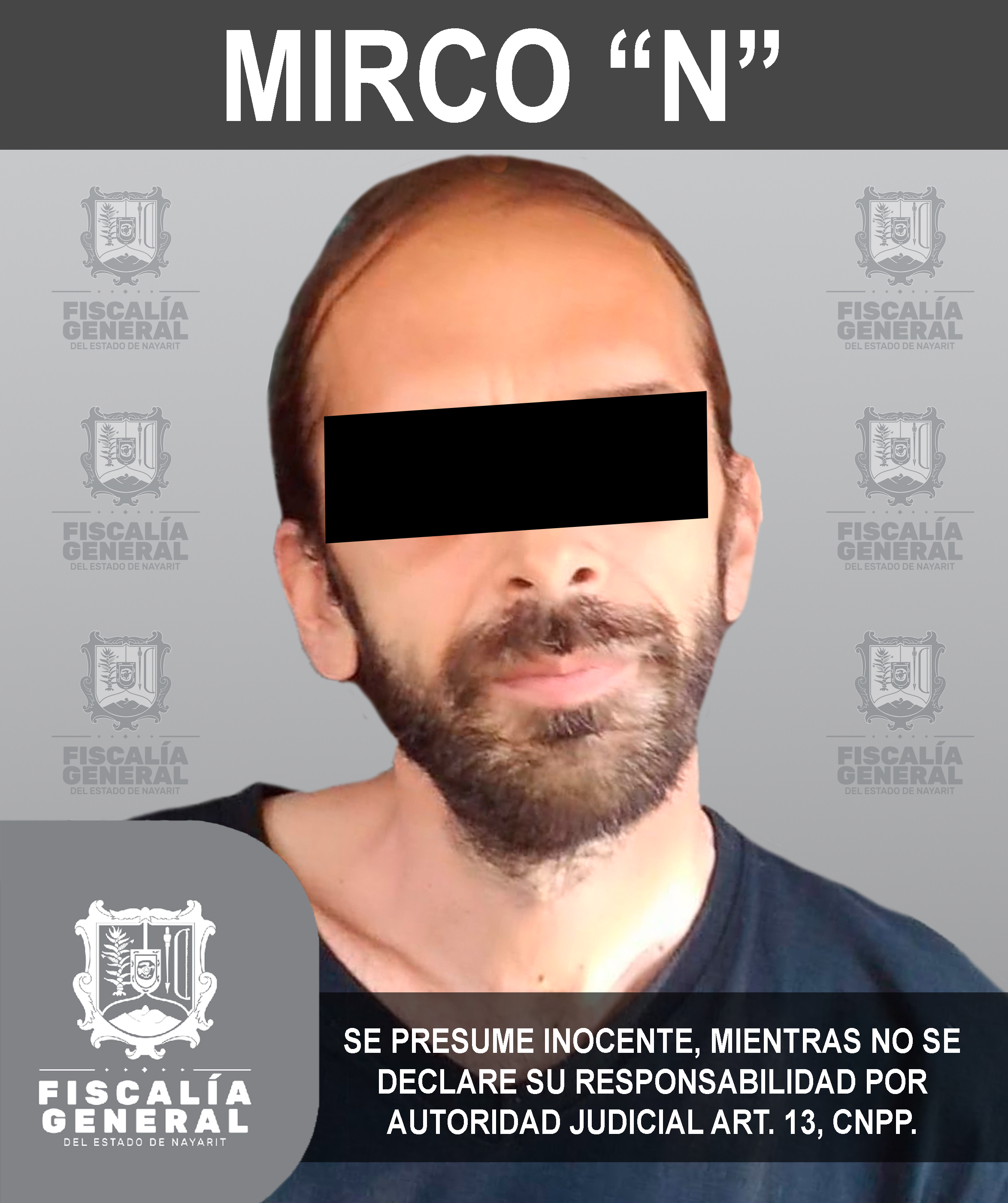 Mirco “N” fue detenido en la localidad Bucerías, municipio de Bahía de Banderas, por existir una orden de aprehensión en su contra pues es presunto sospechoso del delito de violencia familiar en agravio de una persona de sexo femenino. El detenido...