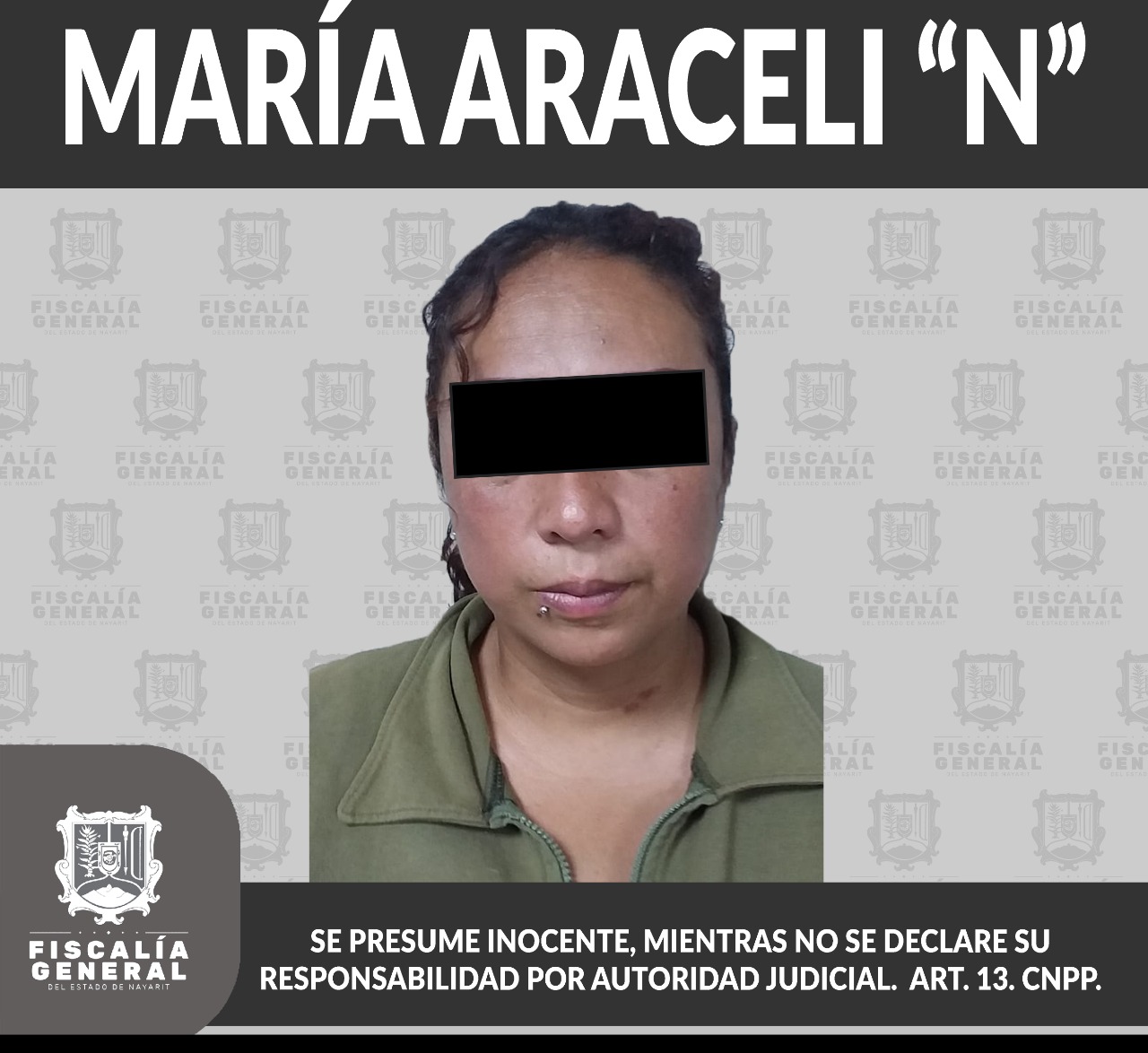 En la capital de Nayarit fue cumplimentada la respectiva orden de aprehensión contra María Araceli “N”, quien presuntamente es autora de hechos que la ley valora como delito de lesiones, cometido en agravio de una persona de sexo femenino de identi...